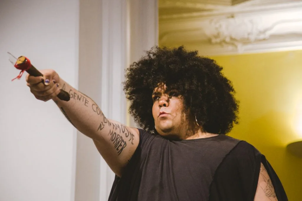 Jota Mombaça é uma artista nascida em Natal que aborda em seu trabalho questões em torno da decolonização e do racismo, trazendo isso à tona por meio de discussões interseccionadas também à classe e ao gênero. A diáspora africana e a violência estrutural da sociedade também são temas recorrentes em suas obras, que também estão muito ligadas à corporalidade.