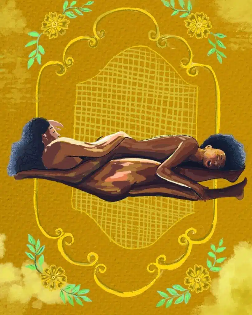 Parece fotografia, parece colagem, mas são pinturas. O artista paraense expressa seu interesse pela figura humana criando imagens hiper-realistas, que destacam corpos entrosados em ternura. Trazendo protagonismo à figuras negras e homossexuais, sob uma estética próxima da produção publicitária de moda, Ritchelly afirma seu compromisso de empoderamento através do amor.