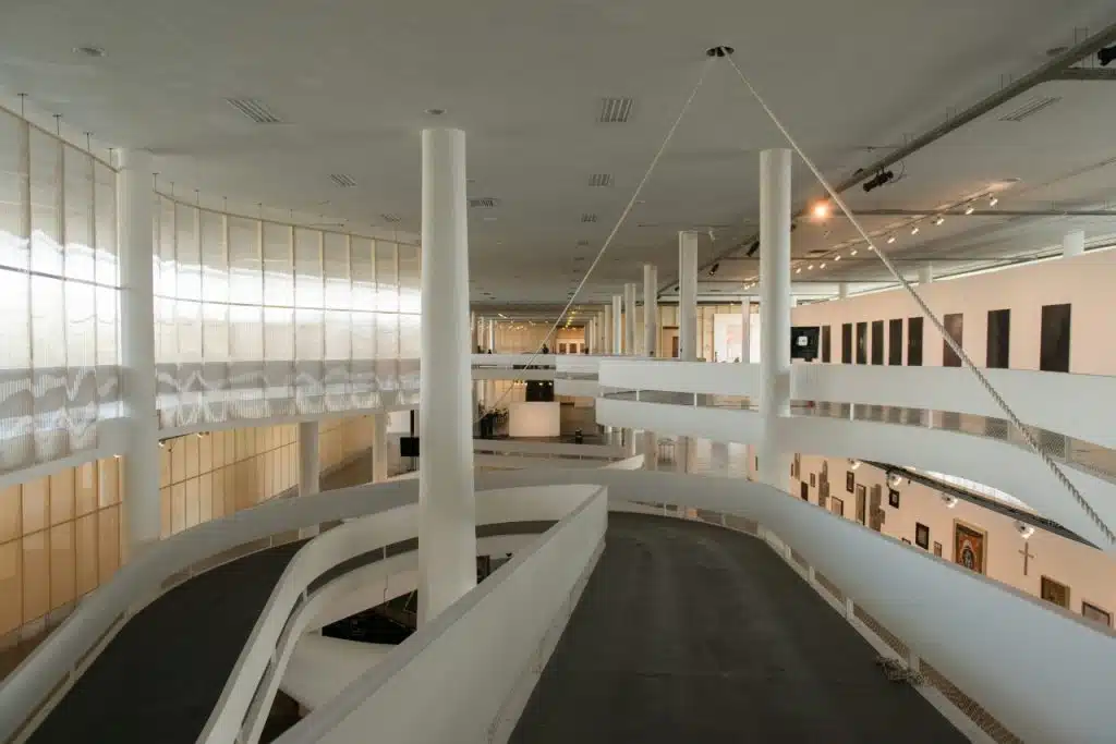 A sala que mais atrai e emociona no terceiro andar coloca juntas obras das artistas Lygia Pape e de Daiara Tukano, que também tem um espaço dedicado a suas pinturas e uma escultura em plumária em seda e espelho intitulada Kahtiri Eõrõ – Espelho da Vida, de 2020. Amazoninos de Pape, que falam sobre a fauna nas mitologias ameríndias, dialogam com o conjunto de pinturas suspensas de Daiara, que apresentam pássaros sagrados, Dabucuri no Céu (2021).