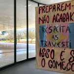 A artista Vulcanica PokaRopa é uma performer travesti, conhecida pela produção da série “Desaquenda” pela Cucetas Produções, disponível integralmente no YouTube. Parte dessa série de entrevistas com mulheres trans e travestis está exposta na vitrine do MAM que antes abrigava a famosa aranha de Louise Bourgeois. A instalação traz diversos estandartes com frases de luta e trechos dos depoimentos das entrevistadas, além de 4 televisores que trazem ao público uma seleção desse material documental.