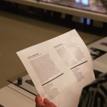 A obra de Vânia Medeiros, de 2019, resulta de um processo coletivo com profissionais do sexo de Salvador e profissionais da construção civil de São Paulo. A artista convidou sete prostitutas e sete operários para desenharem, em encontros realizados ao longo de um mês, suas rotinas de trabalho, suas ferramentas de uso laboral e histórias de suas vivências, resultando em cadernos super coloridos. Uma longa vitrine da mostra expõe uma parte dos desenhos e diversas fotos dos encontros. A artista, então, extraiu elementos desses desenhos e os acumulou em pôsteres que podem ser levados para casa pelo público – de um lado da bancada, um tipo contém ferramentas e objetos típicos dos canteiros de obra; do outro, a pilha de papel carrega itens recorrentes no imaginário da prostituição, entre preservativos, acessórios e brinquedos sexuais.