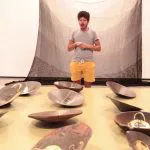 A obra de Dalton Paula é uma das mais belas instalações na mostra. O artista, que mora e trabalha em Goiânia, desenvolve há anos pesquisas que discutem versões da história brasileira e as possíveis reescritas dessa história de maneira a inserir toda uma cultura de herança africana apagada dos registros oficiais. Com Bamburrô, Paula monta uma espécie de banda de marcha ou fanfarra, em posição de desfile, a partir das batéias usadas na mineração no Brasil e gamelas de madeira. Esses anacrônicos utensílios – ainda em uso em garimpos pequenos ou clandestinos – foram coletados na Serra Pelada, Pilar de Goiás e Diamantina, e carregam a marca do tempo e do desgaste do uso, e ganham uma nova camada com pinturas de instrumentos musicais feitas com tinta a óleo e folha de ouro. A marcha caminha silenciosa, evocando as tradições folclóricas brasileiras e afro-atlânticas.