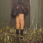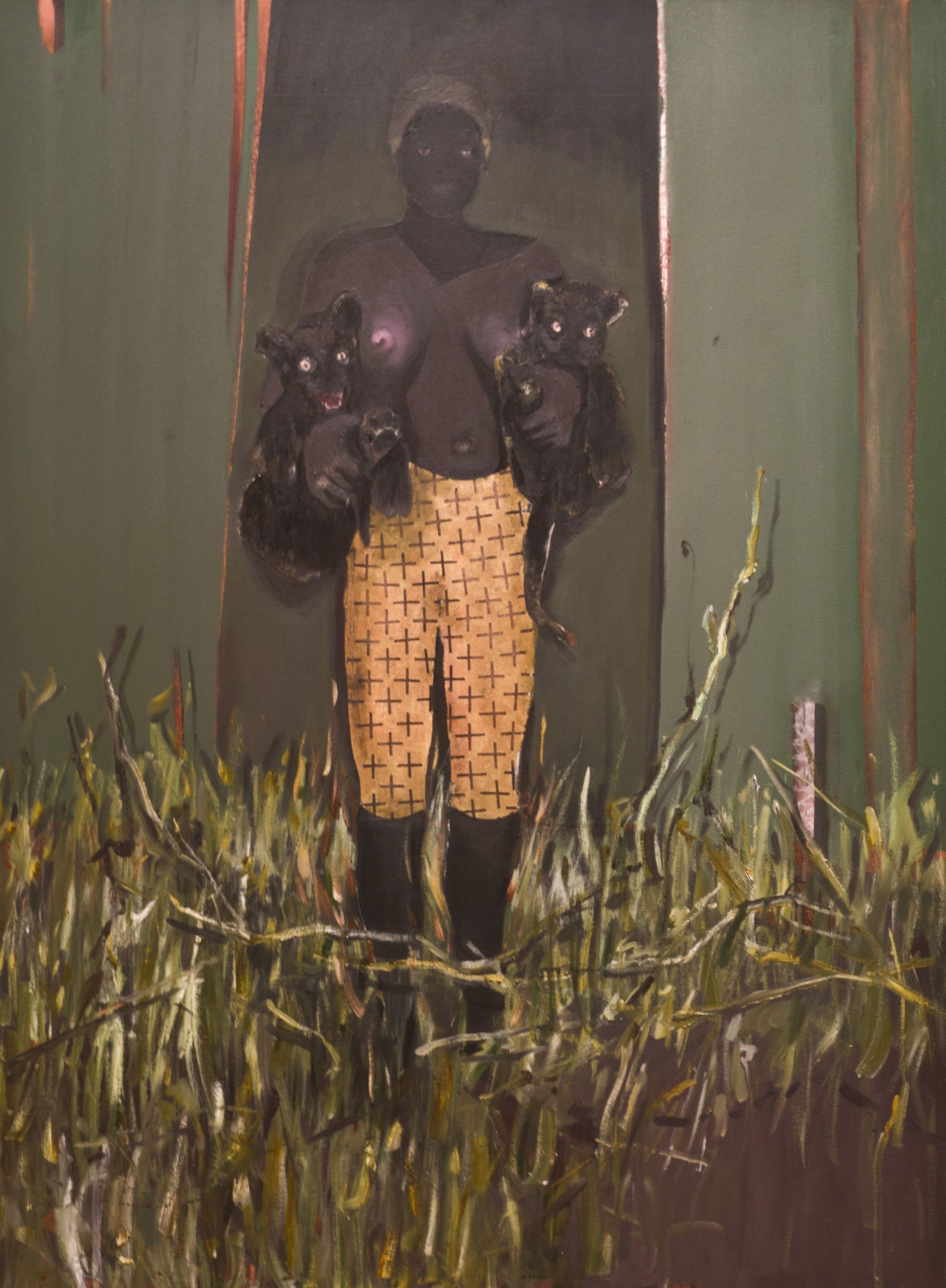 Antonio Obá investiga as relações e contradições das construções culturais e identitárias no Brasil, questionando os estatutos sociais e políticos estabelecidos. O artista faz uso de símbolos étnicos, religiosos e históricos para recontar histórias distorcidas ou apagadas e suscitar reflexões sobre as tensões que permeiam os nossos tempos contemporâneos. Para o Panorama, Obá não realizou performances – que são frequentes em suas pesquisas – mas sim uma série de pinturas que lidam com a imagem do corpo negro e miscigenado, com destaque à pintura Mama (2019).