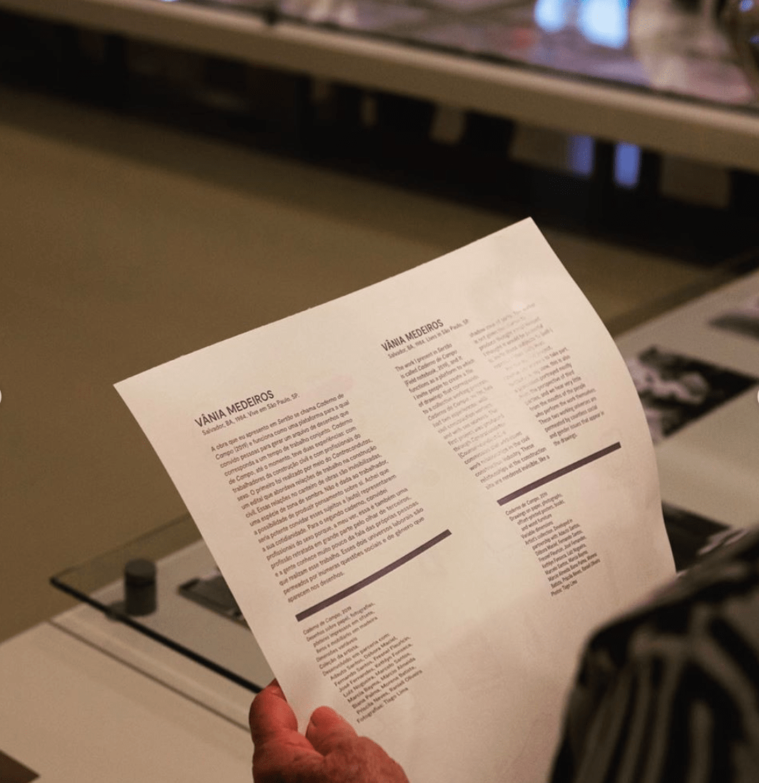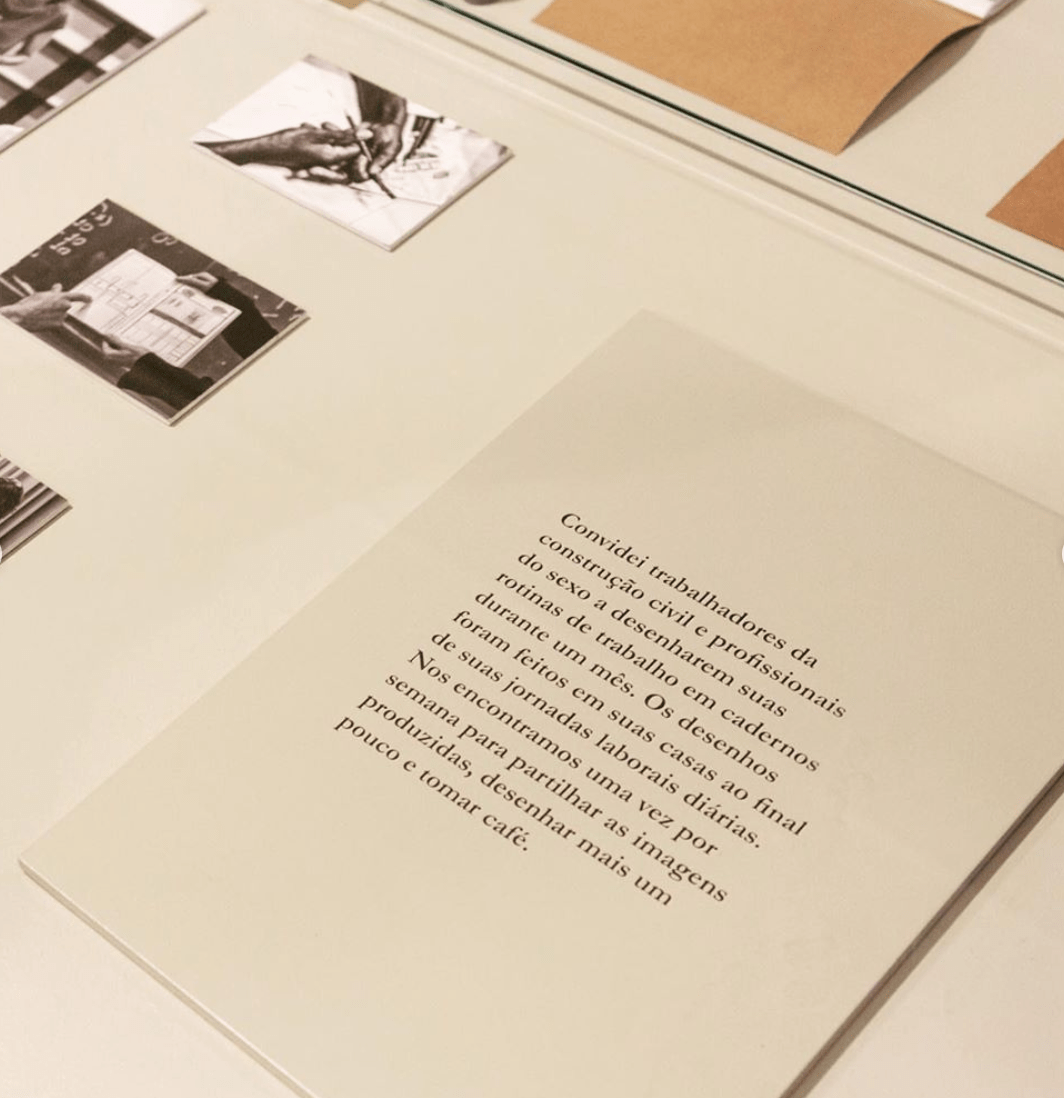 A obra de Vânia Medeiros, de 2019, resulta de um processo coletivo com profissionais do sexo de Salvador e profissionais da construção civil de São Paulo. A artista convidou sete prostitutas e sete operários para desenharem, em encontros realizados ao longo de um mês, suas rotinas de trabalho, suas ferramentas de uso laboral e histórias de suas vivências, resultando em cadernos super coloridos. Uma longa vitrine da mostra expõe uma parte dos desenhos e diversas fotos dos encontros. A artista, então, extraiu elementos desses desenhos e os acumulou em pôsteres que podem ser levados para casa pelo público – de um lado da bancada, um tipo contém ferramentas e objetos típicos dos canteiros de obra; do outro, a pilha de papel carrega itens recorrentes no imaginário da prostituição, entre preservativos, acessórios e brinquedos sexuais.