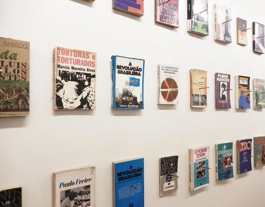 Artista, poeta e professora da Universidade do Estado do Rio de Janeiro (UERJ) Leila Danziger é autora da série “Perigosos, subversivos, sediciosos [cadernos do povo brasileiro]”, obra produzida a partir dos livros censurados durante o período ditatorial. Para a exposição “Hiatus: A memória da violência ditatorial da América Latina”, que esteve em cartaz em 2018 no Memorial da Resistência, em São Paulo, Danziger fixou os livros proibidos em uma parede e, em outra, dispôs reproduções de rostos de desaparecidos, representando tanto aqueles que foram vítimas da ditadura quanto figuras contemporâneas, como Amarildo Dias de Souza – um ajudante de pedreiro que ficou conhecido nacionalmente devido ao seu desaparecimento desde 14 de julho de 2013, após ter sido abordado por policiais militares e levado da porta de sua residência, na comunidade da Rocinha, em direção à sede da Unidade de Polícia Pacificadora local. A série transcende a violência instituída do regime militar, lançando um olhar crítico sobre a continuidade dessa violência nos dias atuais.