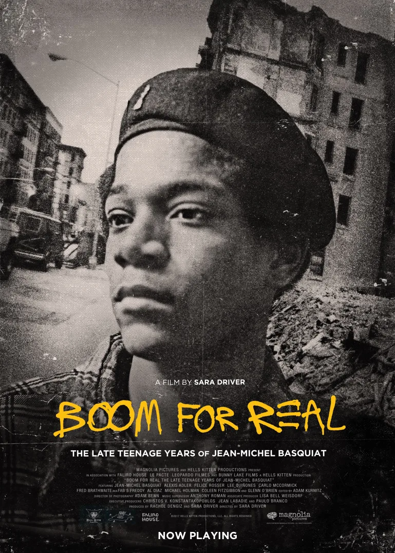 Há dois bons documentários sobre o incomparável Jean Michel Basquiat. O primeiro, realizado em 2010 e lançado em 2011, “The Radiant Child“, foi dirigido por Tamra Davis, amiga pessoal do artista, e tratou do sucesso de um artista negro em um tempo de profunda crise nos Estados Unidos, de racismo exacerbado na sociedade e de muitas controvérsias. Já “Boom for Real“, lançado recentemente (em 2017), tem como foco os primeiros anos de produção de Basquiat, quando ele ainda muito jovem não tinha onde viver e suas telas eram os muros e paredes de uma Nova York tão degradada quanto inspiradora.
