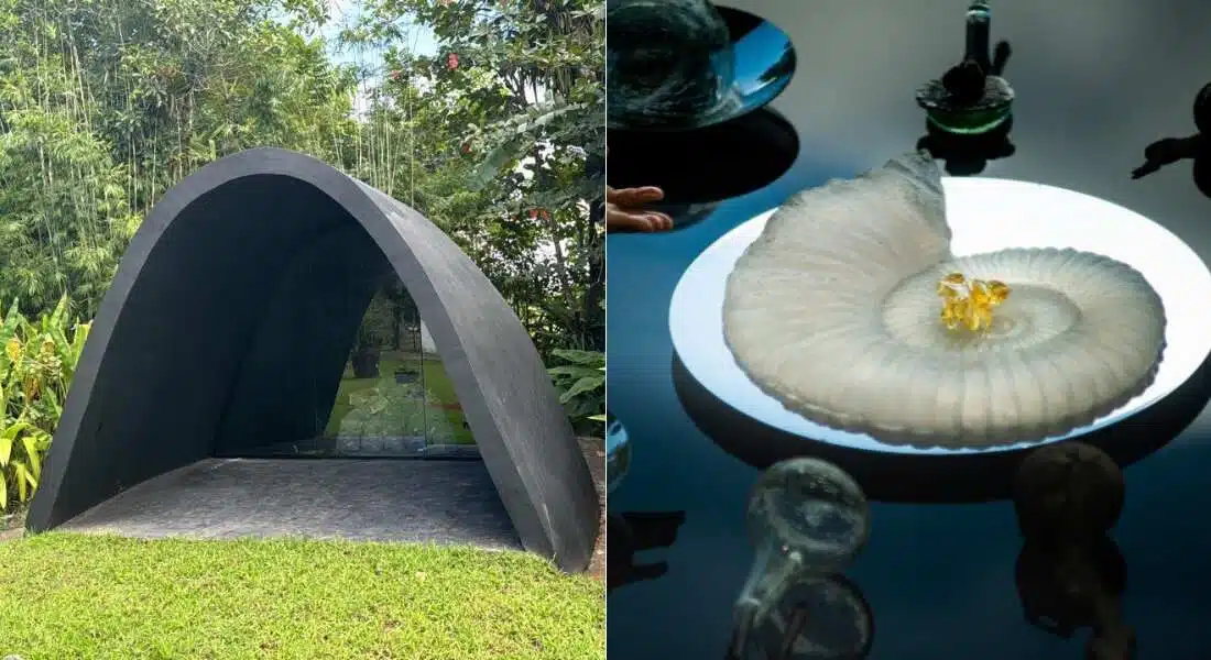 “Banquete da Terra”, que integra o acervo do museu pernambucano desde 2021, agora é exposta em uma gruta projetada pela arquiteta Andrea Helou. A obra, composta por uma mesa com pratos feitos de materiais como cristal, pirita, ouro e bronze, simboliza a trajetória da humanidade e sua relação com a Terra. Milan utiliza pedras como testemunhos históricos e convida o público a refletir sobre nossa conexão com a natureza e as questões urgentes de sustentabilidade. A instalação reforça o diálogo entre arte, ciência e meio ambiente, temas centrais na obra da artista.