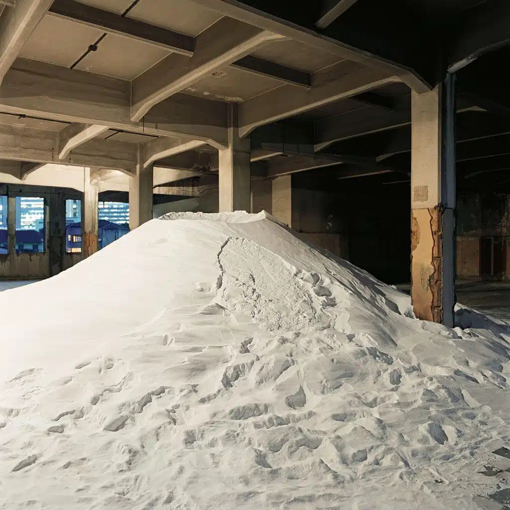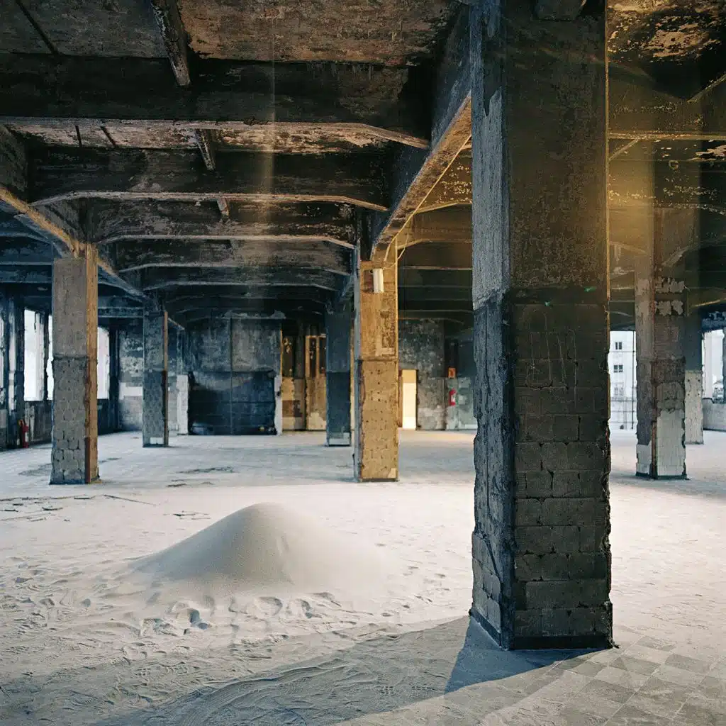 Em 1997, durante o evento Arte/Cidade 3, a paulistana Laura Vinci colocou cinquenta toneladas de areia branca no terceiro pavimento de um edifício abandonado. Segundo a própria artista, “a areia alude à passagem de milhões de anos em que bactérias erodiram as pedras, insinuando-se nas suas microfissuras”. Na laje entre o terceiro e segundo andar, Vinci também fez um furo de apenas doze milímetros, permitindo que a montanha de mais de três metros de altura se dissolvesse pelo chão e se refizesse gradativamente no andar abaixo, formando uma espécie de ampulheta monumental.