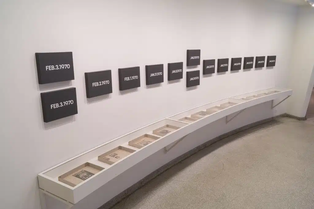 Apesar das restrições impostas por ele mesmo, Kawara tinha um maior limite de caracteres para suas legendas. Algumas delas traziam anedotas pessoais, como “Esta tarde joguei ‘Monopoly’ com Joseph, Christine e Hiroko. Comemos muito espaguete” (1º de janeiro de 1968); outras, registros de eventos históricos, como o pouso da Apollo 11 na lua em 1969. Além disso, Kawara fez uma caixa de papelão para cada pintura, muitas delas forradas com um recorte de um jornal local com as notícias do dia em questão.