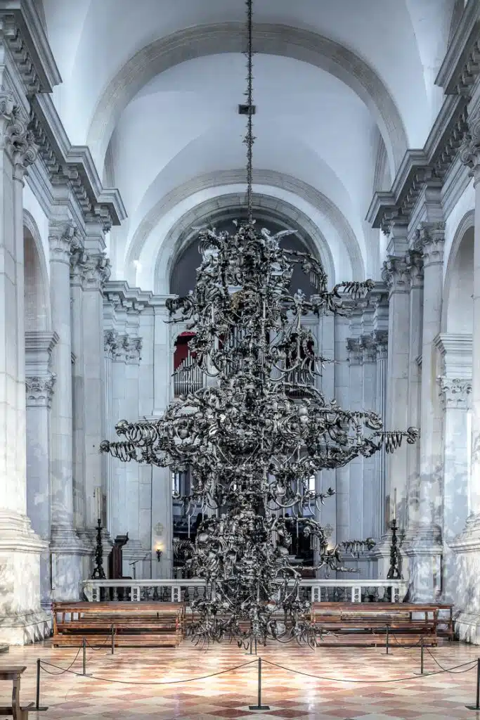 Com as novas obras, em contraste com a arquitetura do mosteiro construído entre 1566 e 1610, Ai Weiwei desenvolve uma nova linguagem através do processo de trabalho com vidro, remetendo à mortalidade e ao legado do artista, e maximizando as possibilidades dentro do trabalho com vidro soprado, além de evidenciar o processo artesanal do Murano. O destaque é uma instalação no lustre monumental dentro da basílica.