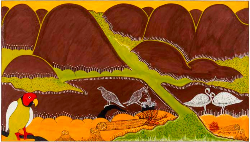 Entre as produções, há uma representação de seu tempo e de seu lugar, como o artista que assistiu ao desenvolvimento da indústria automobilística, ao lançamento de foguetes, e aos mistérios que rondavam os submarinos da Guerra Fria. Para a artista-curadora, assim como a poética de Alcides parece girar em torno do desejo de um mundo organizado, suas obras também nutrem um carinho especial pela organização, resultado do esforço de se ordenar racionalmente a existência.