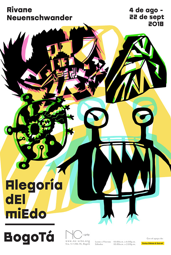 O centro cultural NC-arte, em Bogotá, apresenta a exposição “Alegoría del Miedo”, da artista Rivane Neuenschwander. A mostra explora a ideia de medo, encarando essa emoção da perspectiva de uma criança. A artista cria capas feitas à mão baseadas em desenhos, medos e sonhos de crianças que vivem nos bairros onde a exposição será montada.