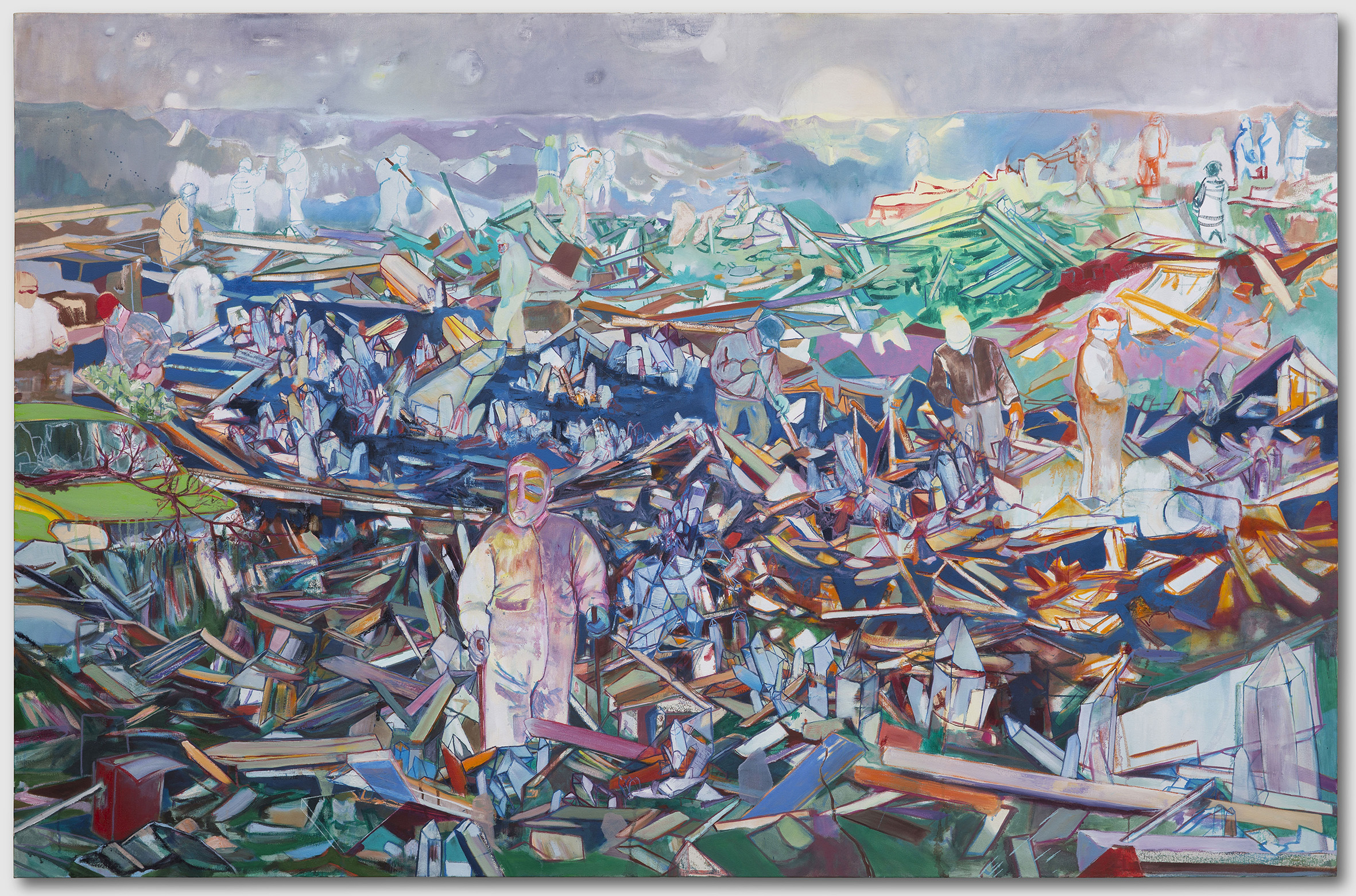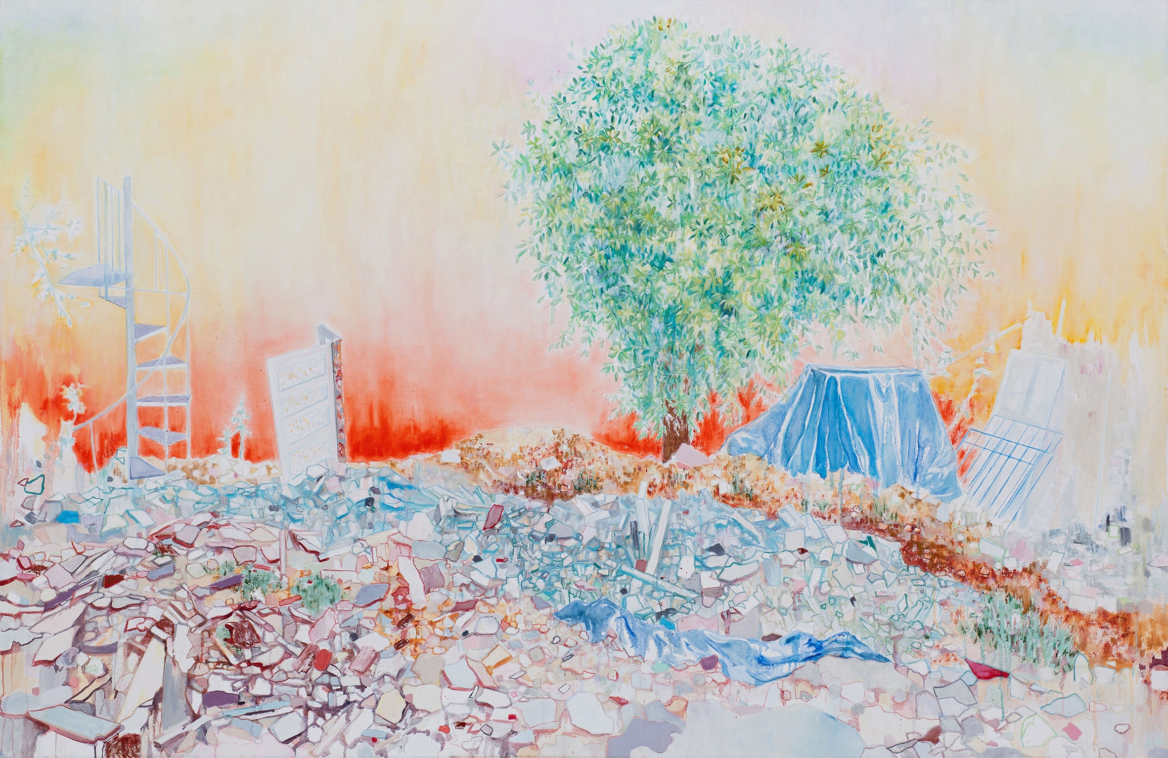 As pinturas de Alessandra Duarte apresentadas em sua primeira individual em São Paulo (2011) retratavam arquiteturas modernistas em meio a luxuriosas florestas tropicais, nas quais a figura humana aparecia em geral pequenina, bem delineada, mas nas cores do plano sobre o qual se movimentava, borrando a separação entre figura e fundo. A partir de 2012, porém, vê-se uma mudança essencial no tema de seu trabalho: a natureza ganha força sobre as construções humanas, que aparecem em ruínas ou já sob a forma de entulho. Surgem paisagens que remetem a cenas pós-catástrofes naturais, com tesouros escondidos em meio às montanhas de destroços, escavadas por figuras encurvadas. A paisagem por vezes cresce em violência, e em momentos convive placidamente com outras formas de abrigo, mais vulneráveis e em comunhão com a natureza: casas da árvore, barracas e barcos.