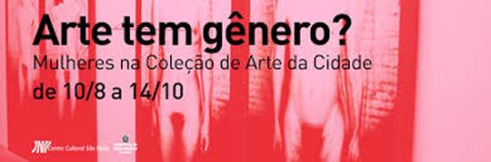 Nesse sentido, a exposição “Arte tem gênero? Mulheres na Coleção de Arte da Cidade” destaca a produção artística contemporânea de mulheres presentes no acervo do CCSP. A mostra, organizada simplesmente em função de gênero, propõe que o público responda a indagação a partir das obras expostas de Ana Maria Tavares, Carmela Gross, Célia Euvaldo, Dora Longo Bahia, Jac Leirner, Lydia Okumura, Lygia Pape, Nazareth Pacheco, Regina Silveira, Regina Vater, Rosana Paulino, entre outras.