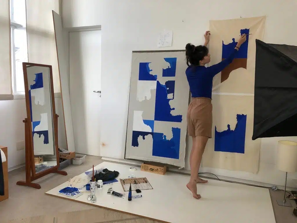 Somente em São Paulo, estima-se que tenha entre 300 e 500 rios concretados embaixo de casas, edifícios e ruas. Por isso, a maioria de seus habitantes tem uma percepção de uma cidade com três ou quatro rios apenas, quando na verdade, estamos quase sempre a mais de 300 metros de um curso d’água. Sendo assim, a artista nos convida a mergulhar em sua produção pictórica e a olhar através do asfalto para enxergar possibilidades poéticas.