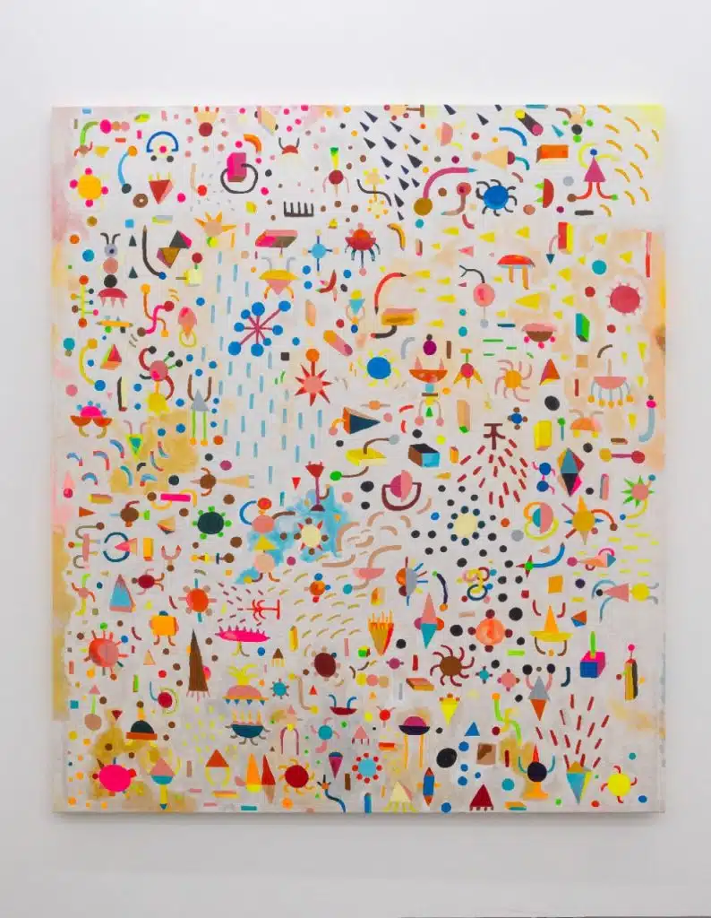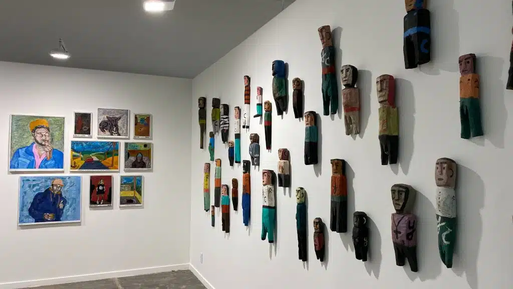 Uma das paredes do estande da Rodrigo Ratton Galeria é inteiramente dedicada aos bonecos de madeira feitos pelo Mestre Geraldo Cabueta, escultor da região de Juazeiro do Norte, interior cearense. Eles dialogam com trabalhos de Maria Lira Marques que remetem a pinturas rupestres e obras do artista Desali, cujo intuito é promover contato entre a periferia e o universo da arte. O estande evidencia o espaço que finalmente vem sendo dado por museus e galerias para artistas não brancos, autodidatas e para além do sudeste.