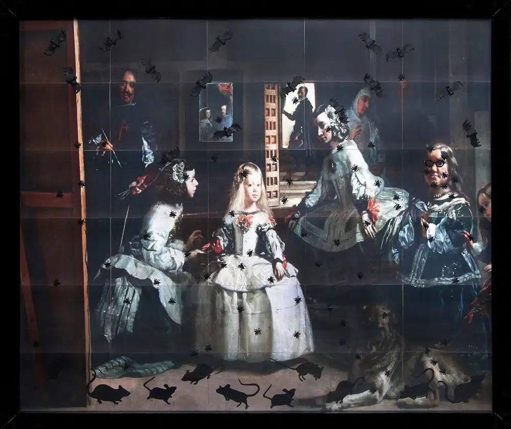 Na data em que faria 90 anos, Nelson Leirner é homenageado no estande da Silvia Cintra + Box 4. “Me agrada o fato de banalizar o banalizado”, disse o artista, e esse é o mote que guia as obras expostas. Ao questionar a sacralização da arte e subverter imagens, Leirner encheu a cena clássica das meninas de Velázquez de ratos e insetos e fez Mona Lisa ganhar uma peruca de stickers.