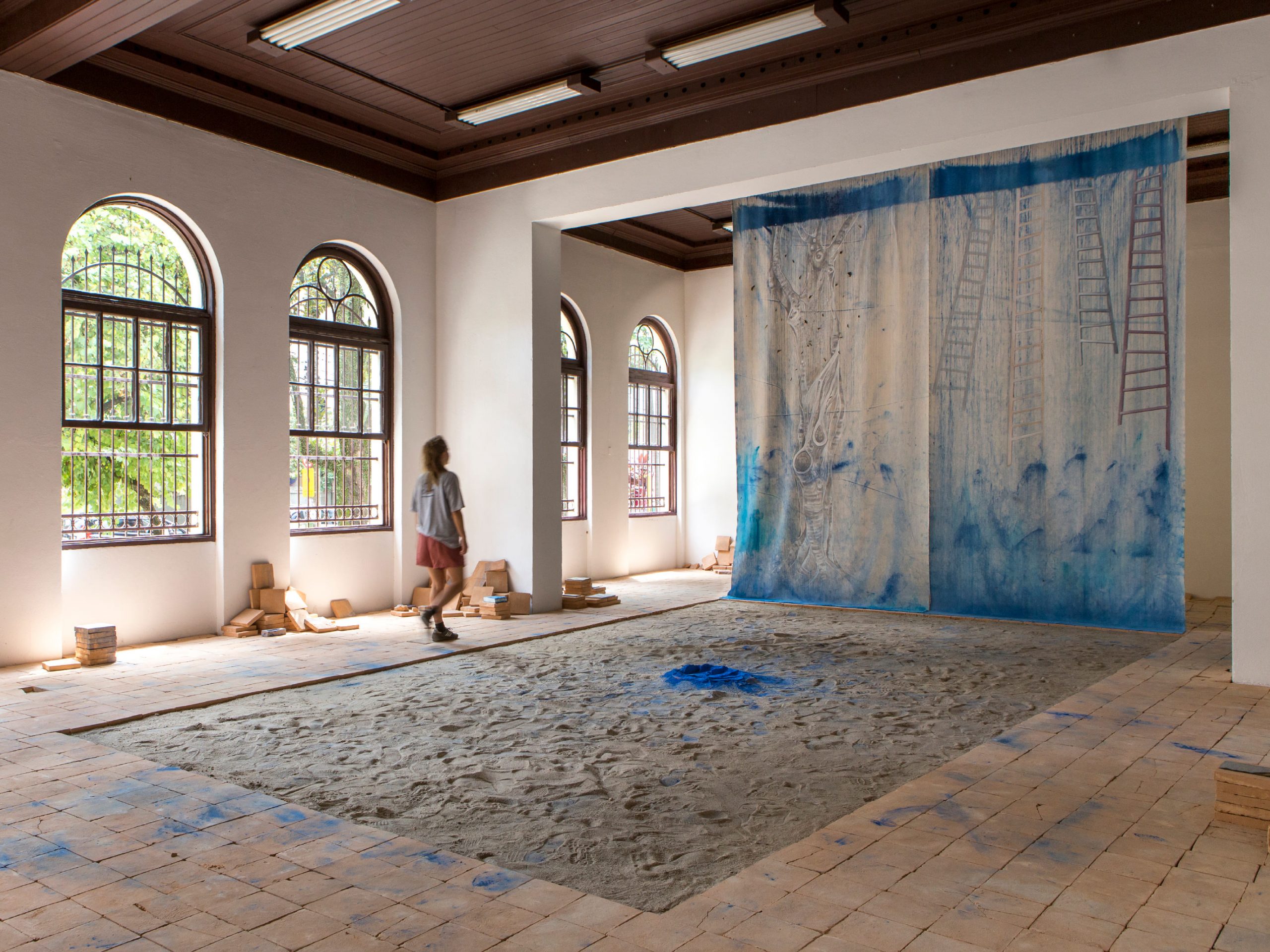 Formada em Arquitetura pela FAU-USP, Bel Falleiros (n. 1983) começa sua pesquisa artística informada pelo urbanismo, por como a cidade exibe as marcas de sua história às vezes mais naquilo que oculta do que em seus monumentos, e por como o corpo – individual e social – é tão formatado pela cidade quanto ela é construída por ele. Nascida em São Paulo e tendo vivido em Nova York em Berlim, sua experiência de vida nessas grandes metrópoles imiscui-se à pesquisa histórica, geográfica e arqueológica em sua produção artística que parte geralmente do ato de caminhar e se formaliza através de instalações, uma mídia de natureza interdisciplinar e polifônica.