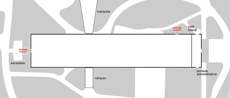 Entradas: fachada sul (escadaria) e ao lado do Café Bienal (Praça das Bandeiras)