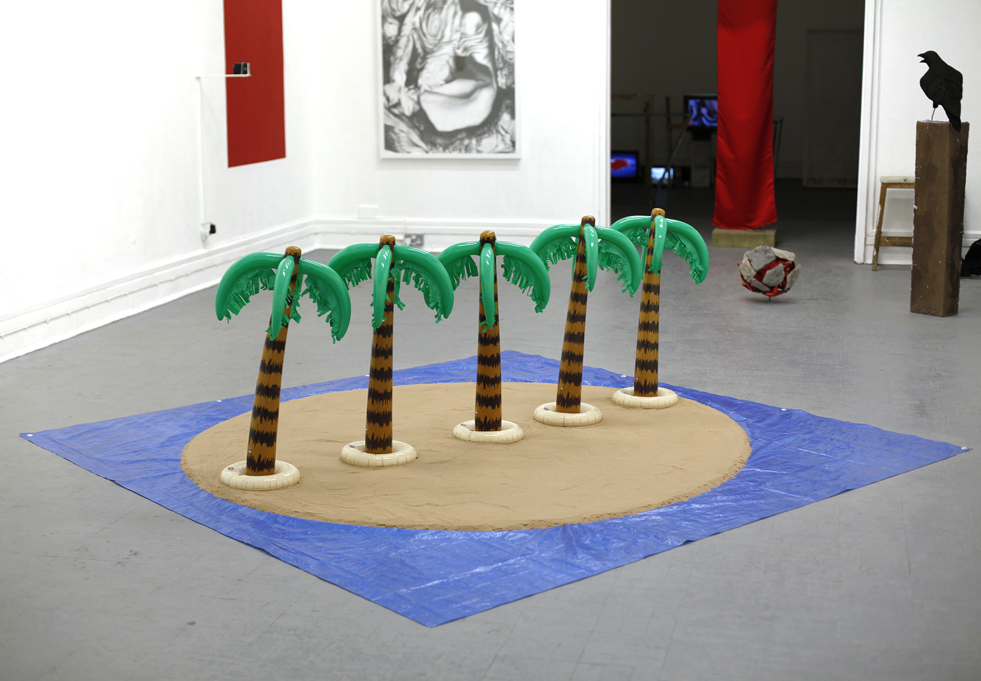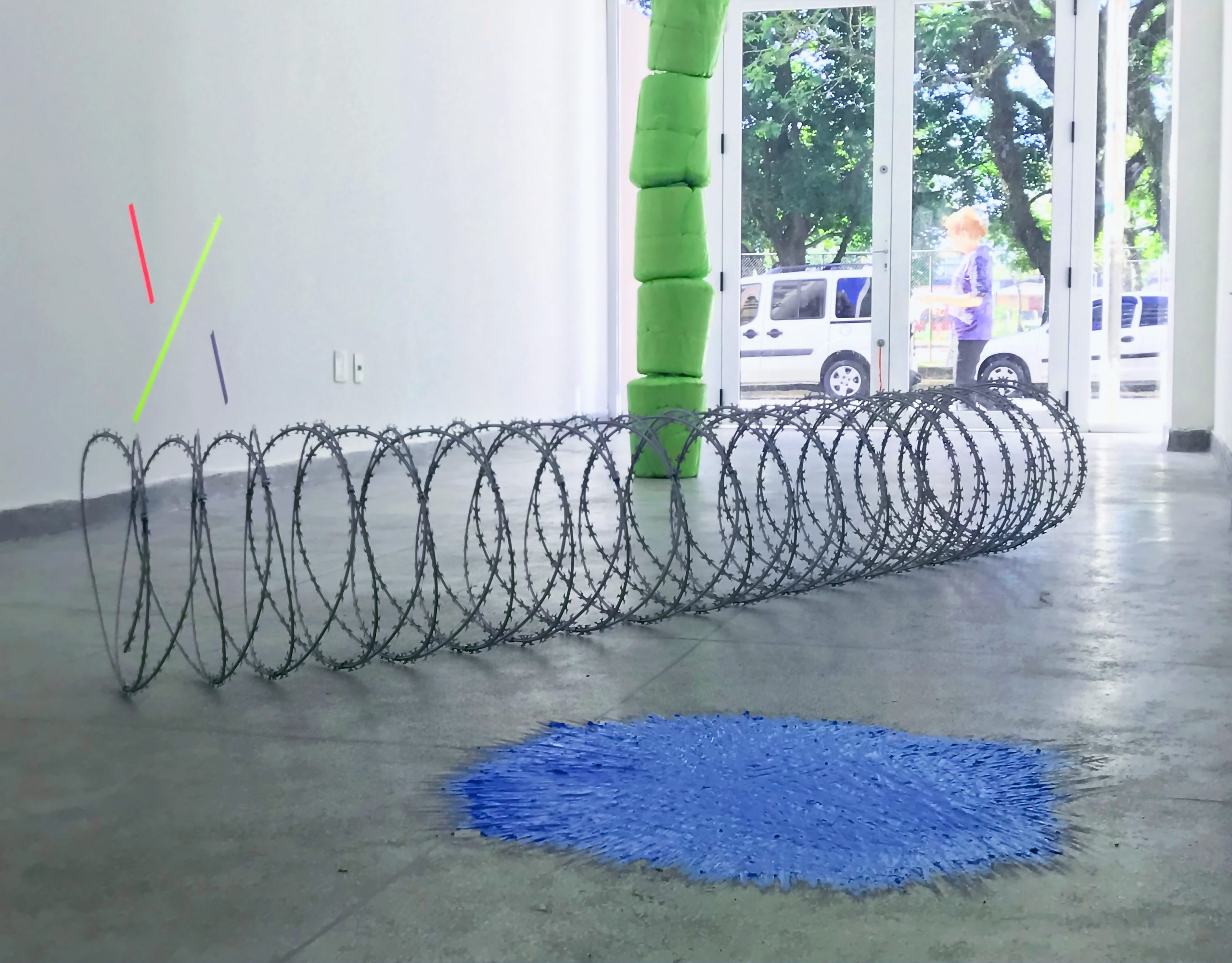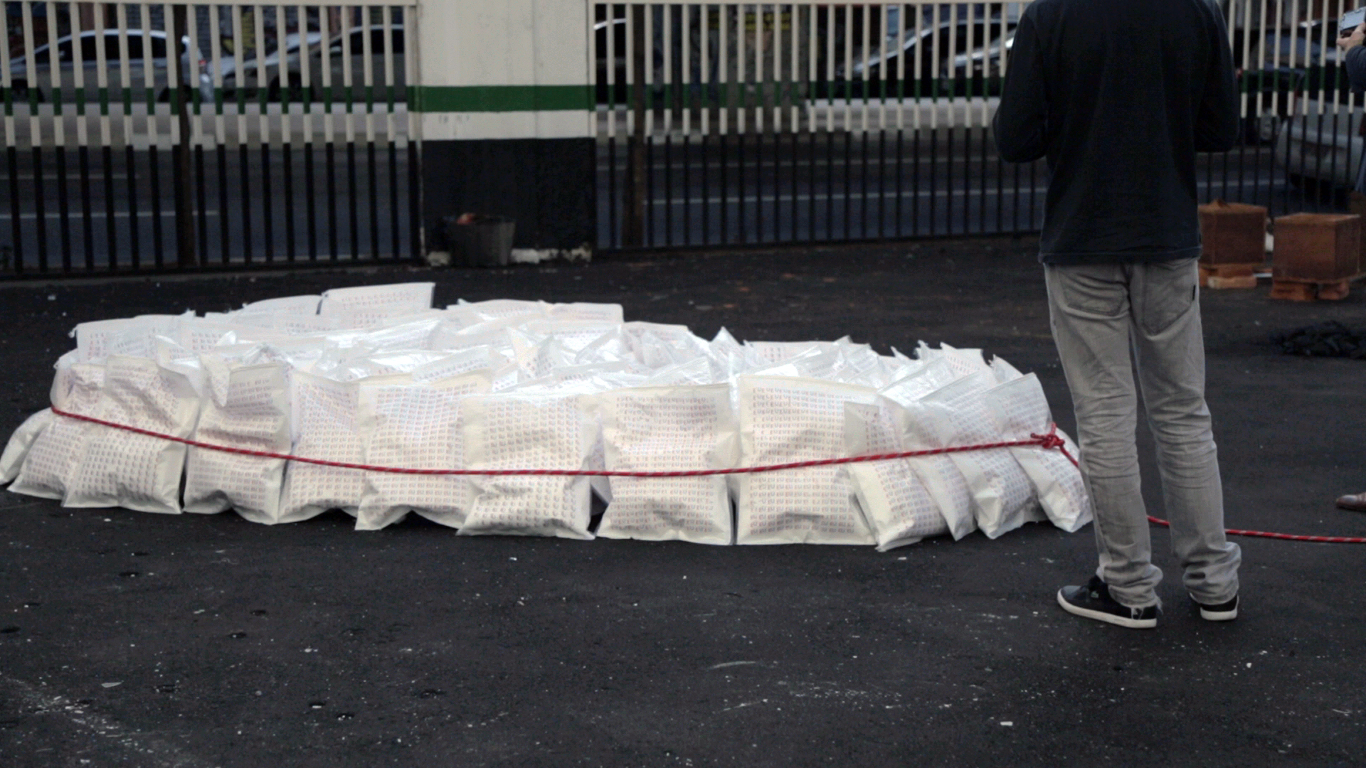 Sperinde desdobra suas pesquisas não apenas nas imagens digitais – estáticas ou em movimento. Objetos e instalações são inerentes à sua prática, e da mesma forma seguem a lógica de um desenvolvimento primeiro como projeto, depois como material. As soluções empregadas são, em geral, o uso de materiais industrializados e prontos para consumo (como fitas adesivas, boias infláveis, cordas e lonas legatários dos readymade), ou encomendados ou feitos sob medida para o trabalho (porque não existiam no mercado nas proporções, formas, cores e composições idealizados pelo artista). Há nessas obras uma relação de correspondência com a arquitetura do lugar onde elas se instalam. Não há um desejo de especificidade do local – conversando em seu ateliê, inclusive, chegamos à conclusão de que seu interesse não está em criar obras “site specific”, mas sim “context specific”, ou seja, que conversem com o contexto como um todo. Não é só a arquitetura, portanto, que informa esses objetos e instalações, mas o contexto geográfico, político, social, econômico, histórico, artístico e o que mais possa preocupar o artista. É por isso que um traço comum em todo seu corpo de trabalho (mas que é extremamente sutil e provavelmente passa desapercebido em uma primeira visada) é o aspecto biográfico que Sperinde imprime em suas criações. Há uma atenção recorrente, por exemplo, às ideias de deslocamento, fronteira, pertencimento, território, nacionalidade e nacionalismo, ecoando diretamente sua experiência como expatriado; no entanto, esse interesse é indissociável também do tecido social tensionado por essas questões tão urgentes desse mundo globalizado, onde as distâncias se encurtam radicalmente, ao mesmo tempo que a movimentação se torna igualmente mais fácil e mais problemática. A alusão a experiências pessoais é reduzida em seus projetos, emerge mais como insinuação ou como pano de fundo de uma vivência que pode ser compartilhada, do que como menção literal e narrativa de passagens e acontecimentos. Sperinde trata da existência, do pertencimento, do caminho, da identificação e do desvio como quem fala da natureza da vida, e não como quem fala de si.