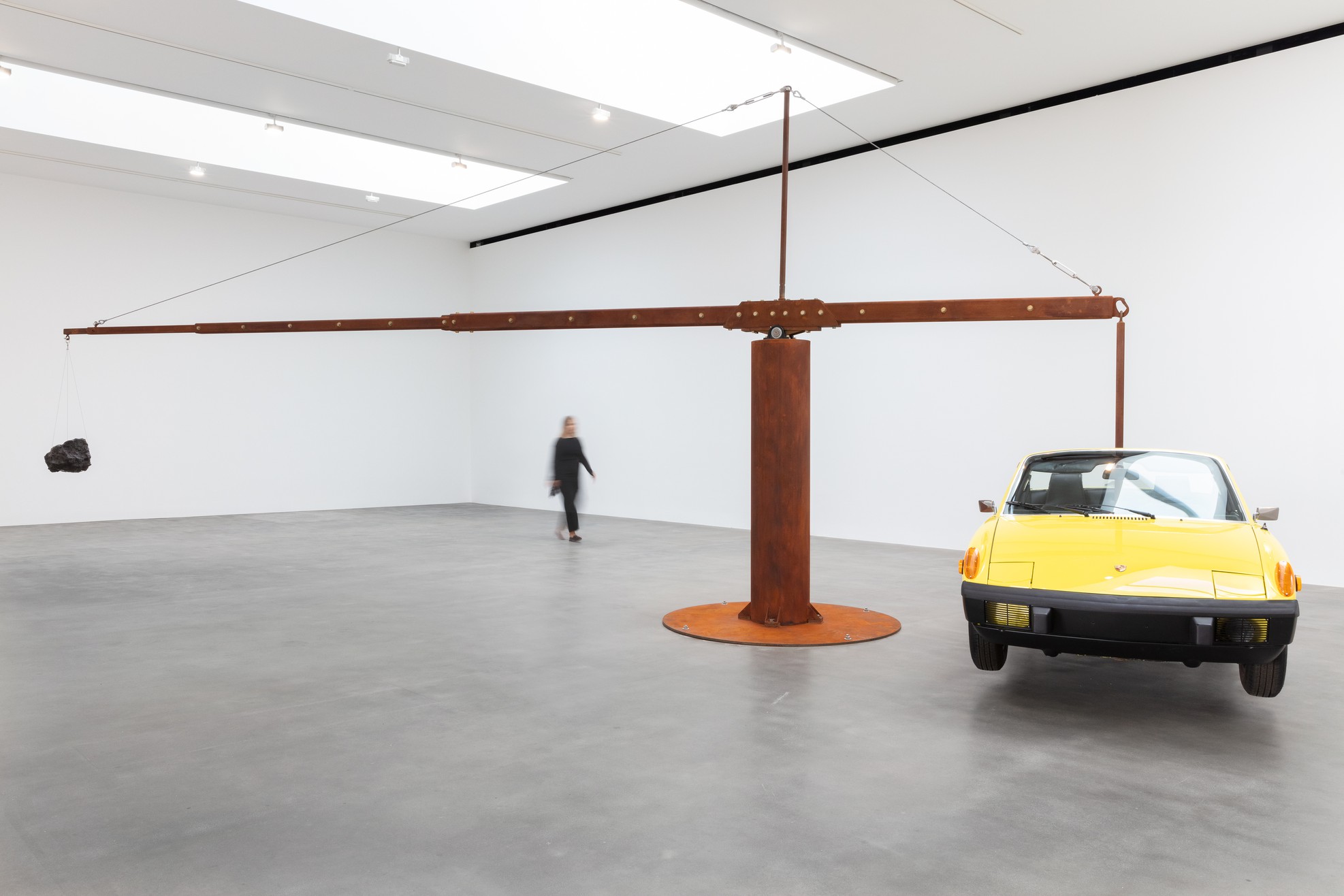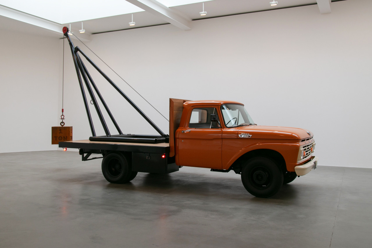 A Gagosian apresenta “Measured“, uma exposição de duas obras em grande escala do artista americano Chris Burden: 1 Ton Crane Truck (2009) e Porsche with Meteorite (2013). Burden iniciou sua carreira com uma série de ações inusitadas no início dos anos 1970, desafiando seus limites mentais e físicos e, assim, também os limites da arte e da performance. Nos espaços da galeria na Rua Britannia, em Londres, um caminhão 1964 F350 Ford é pendurado em balanço com o peso de um cubo de uma tonelada de ferro, e um Porsche 914 fica suspenso em equilíbrio com um meteorito.