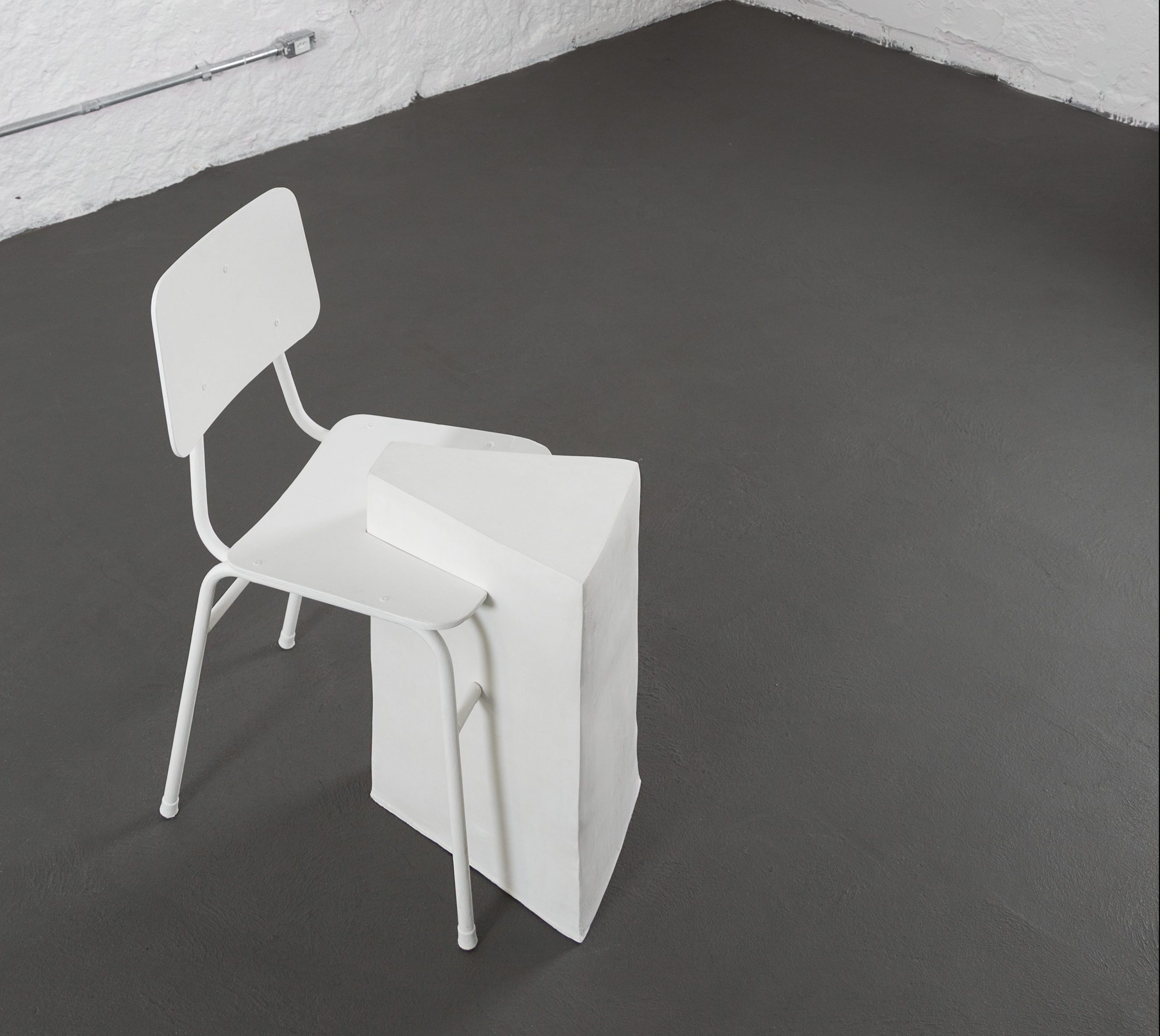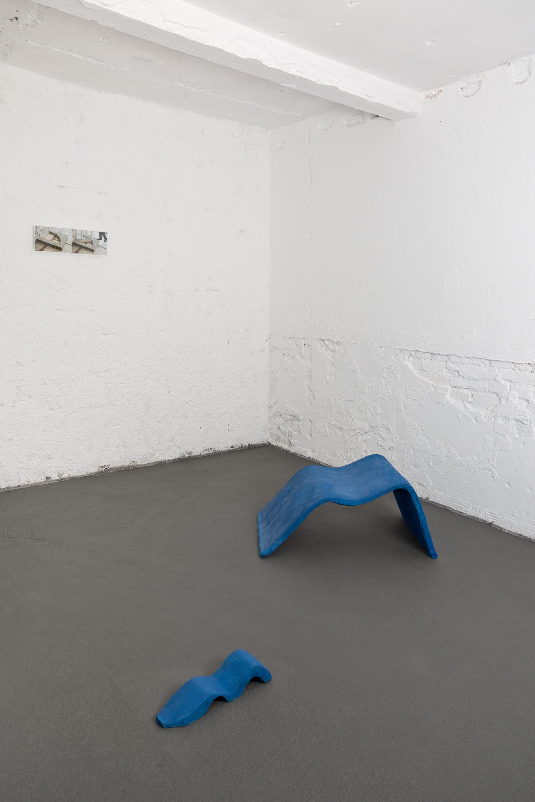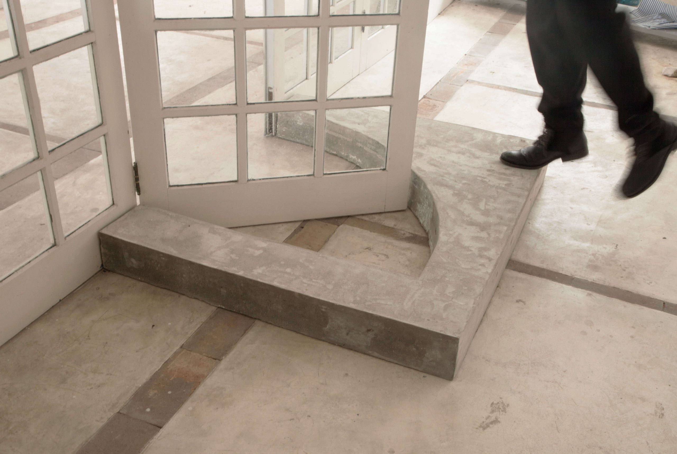 Seus trabalhos em geral são criados pensando na situação, contexto e local de instalação, seguindo uma lógica próxima do site-specific. No entanto, as obras também são flexíveis o suficiente para se deslocarem a outros ambientes, uma vez que a linguagem da arquitetura e seus elementos se repetem e se reiteram. Em “Sentido de abertura da porta limitado com concreto” (2016), por exemplo, uma pequena laje de concreto polido montada nas medidas do umbral limita o ângulo de abertura das portas e obriga os passantes a ultrapassar o pequeno degrau que se forma no chão. Já “Cul-de-sac”, do mesmo ano, prolonga a pequena área do capacho, que normalmente se limita à entrada de um lugar, a todo o espaço expositivo, convidando o espectador a percorrer a passarela que continua pelo chão mesmo com a interrupção de uma coluna. A sutil intervenção acaba surpreendendo pelo estranhamento que causa – aquele objeto pertence ao chão e à entrada, mas domina o resto do caminho de maneira inusitada, sem pertencer ou combinar perfeitamente com a posição que ocupa.