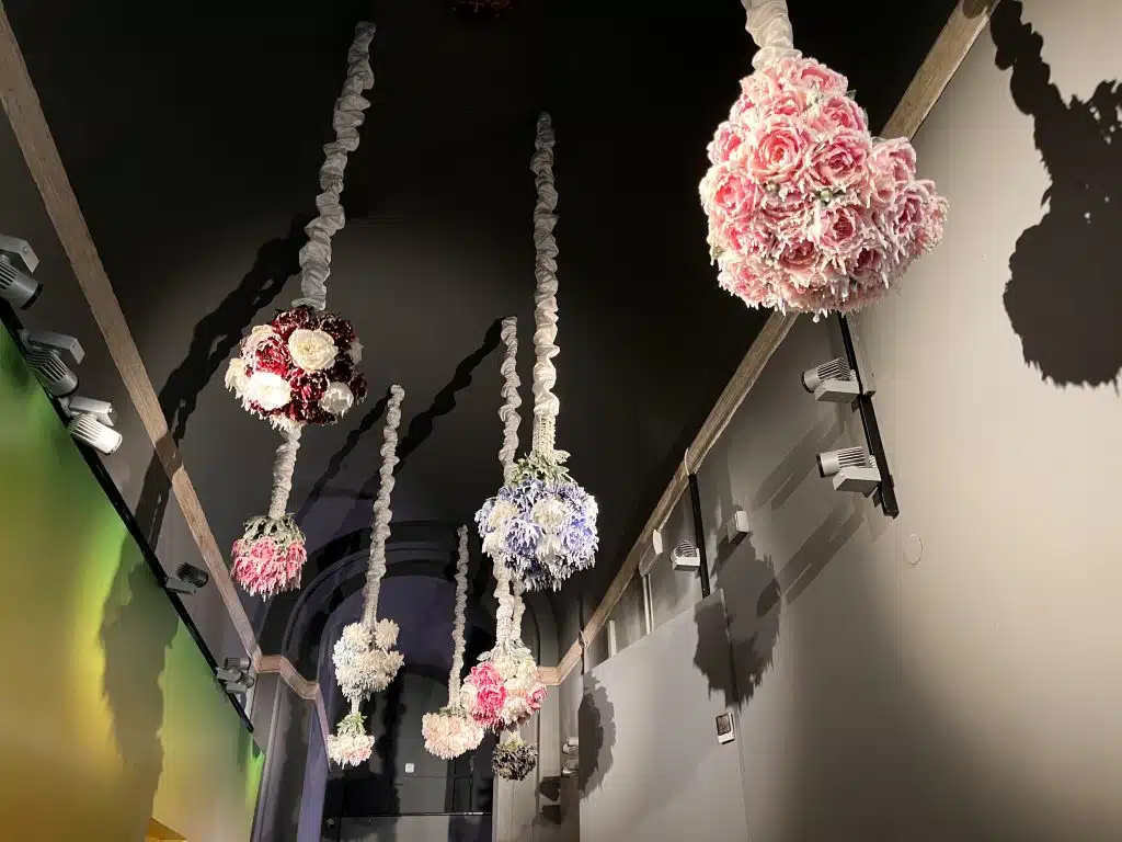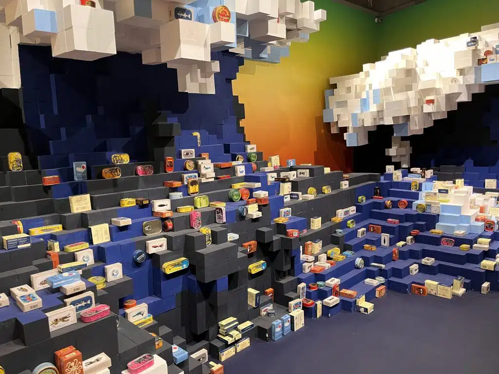 Adiante, seguimos por um segundo jardim vertical. As esculturas em forma de flores da artista norte-americana Petah Coyne pendem do teto acima do observador. Feitas de cera, um material pouco resistente, a obra de Coyne remete à fragilidade das flores e à beleza que nela está contida. Em meio ao corredor onde está o jardim vertical de Coyne há uma porta que nos leva a uma pequena sala, onde está a instalação Original Canned Fish Shop, do artista alemão Tobias Rehberger, que é verdadeiramente uma loucura. Em um cenário colorido com as cores de um céu ao entardecer, mini cubos que mais parecem pixels azuis e brancos estão justapostos de maneira a formarem um céu tridimensional. Por entre estes cubos estão dispostas uma centena de latas de peixe. A obra convida o visitante a questionar-se sobre os hábitos de consumo contemporâneos.