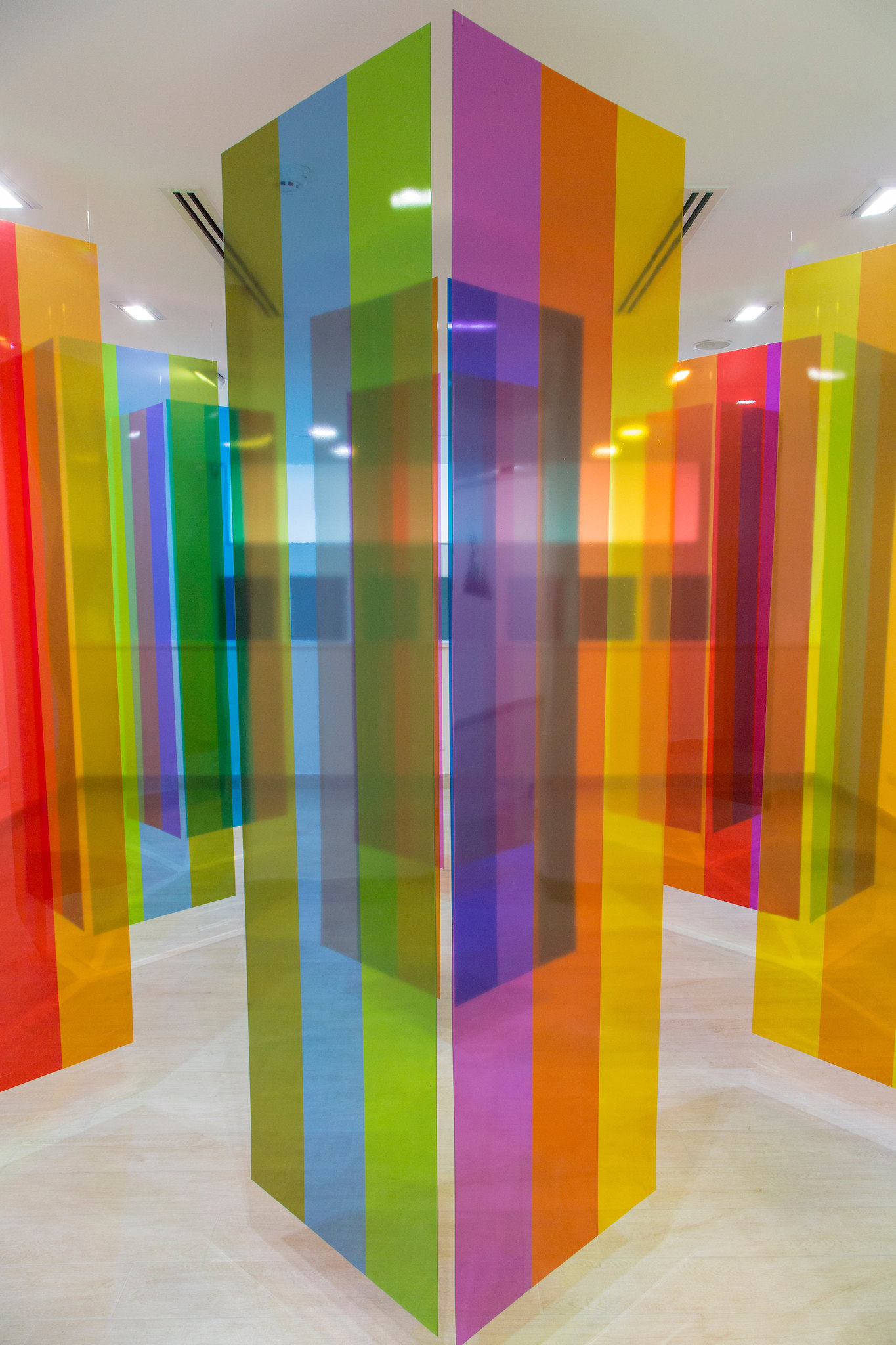 Com um conjunto de 8 obras, além de 20 fotos, a exposição faz um percurso imersivo em diferentes fases do trabalho do artista, apresentando sua pesquisa e pensamento para além da arte cinética, movimento no qual é reconhecido como expoente pela crítica mundial. No espaço térreo da instituição, quatro obras emblemáticas da trajetória de Cruz-Diez, três fisicromias e uma transcromia, abrem a mostra. Oriundos de coleções brasileiras, são trabalhos que introduzem o público a alguns dos fenômenos perceptivos e procedimentos fundamentais na pesquisa cromática de Cruz-Diez. Inédita no Brasil, Labirinto Transcromia (1965/ 2017), exibida no mezanino, é um convite à interação dos visitantes, que se tornam agentes criativos na mostra.
