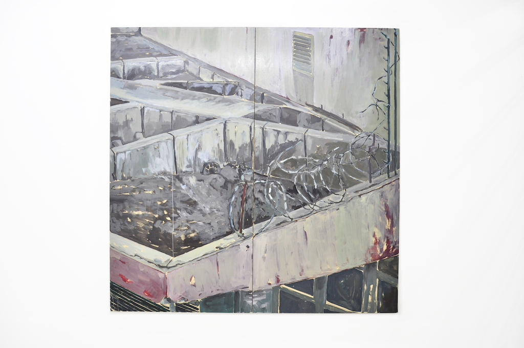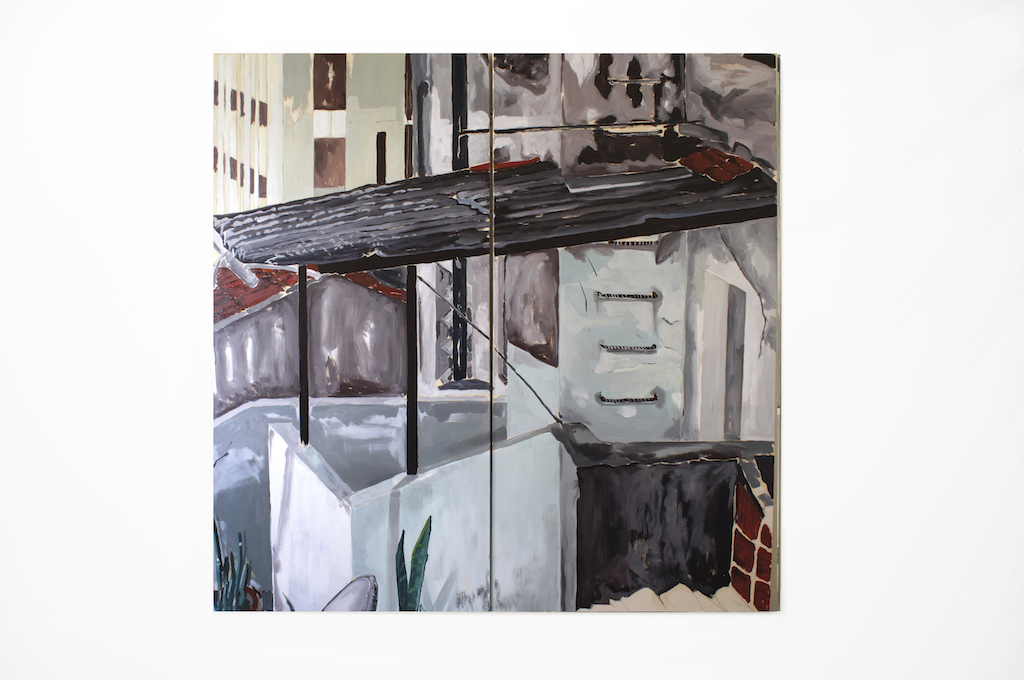 Seus trabalhos também ganham um aspecto, por vezes, instalativo, devido à disposição das pinturas e composição das telas. O foco na arquitetura e na tradução de espaços tridimensionais em imagens bidimensionais também se desdobra no uso de diversos painéis que, juntos, formam a imagem final – mesmo com alguns desencontros acidentais ou lacunas intencionais.
