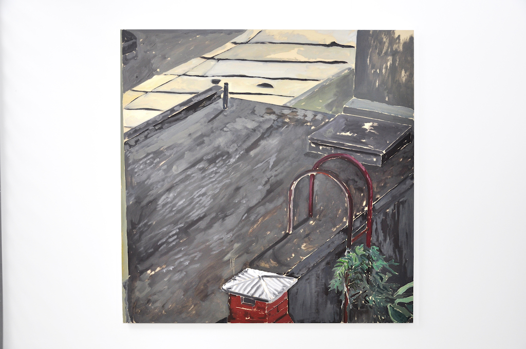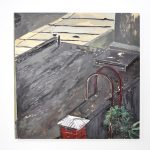 O universo particular do artista às vezes dá lugar à paisagem urbana externa, com registros afetivos dos seus percursos na rua, dos elementos que prendem o olhar e da memória da vivência da cidade. São pequenos detalhes, acidentes visuais e matérias arquitetônicas que Almeida constrói em suas séries paisagísticas, que da mesma maneira mantém-se inabitadas, apenas evidenciando os vestígios humanos.