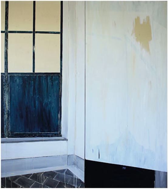 O trabalho de David Almeida, brasiliense residente em São Paulo, centra-se em torno da pintura – sua pesquisa foca-se na representação pictórica dos espaços interiores. Apesar de também explorar suportes como desenho, fotografia e até performance, é na linguagem da pintura que Almeida desenvolve seu vocabulário mais expressivo. Seu interesse pela apreensão de cantos e espaços menos óbvios se transforma em cenas inabitadas de janelas e chãos, paredes e objetos domésticos, em uma narrativa sutil sobre a intimidade de um lugar sem relevar quem são seus personagens, seus habitantes. São seus lugares pessoais que informam as obras que cria