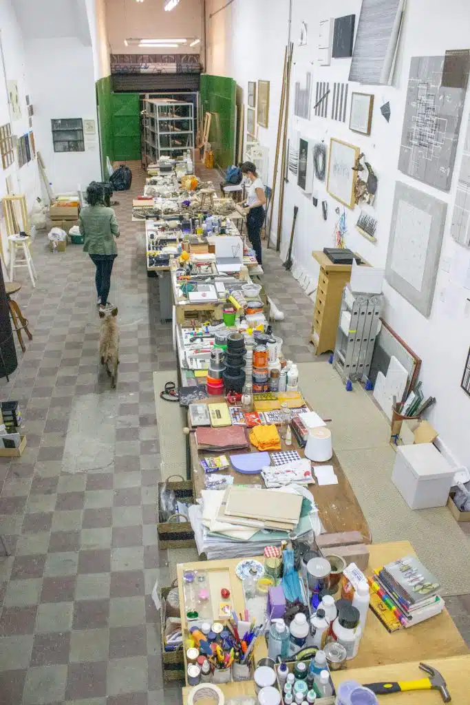 Lá, Rafaela Foz, Alice Lara, Jade Marra, Raphael Escobar, Marina Borges e Mariano Barone produzem suas obras, trocam vivências e aprendem uns com os outros. O ateliê compartilhado, além de livrá-los da “solidão artística” também permite que eles se estabeleçam no centro da cidade, algo que seria financeiramente inviável individualmente. Neste último sábado, dia 28 de maio, os artistas fizeram um “ateliê aberto” e receberam o público em seu espaço, permitindo que a troca se estenda ainda além do que o contato artista-artista, mas chegue ao público em geral, que tem uma oportunidade gostosa de conhecer o espaço criativo deles. Estas aberturas são frequentes, fique de olho nas mídias sociais do grupo para ficar por dentro da agenda.