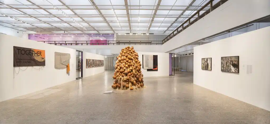 Outro valor fortemente defendido em Dos Brasis é a pluralidade. Num primeiro sentido, os curadores reconhecem que, apesar do pioneirismo da proposta numerosa, o projeto é fruto do esforço e trabalho das muitas mãos que os antecederam. Lorraine, ainda, acrescenta e revela sua esperança futura: “Eu acho que Dos Brasis vem com essa audácia de desejo, de projeção e de possibilidade. Meu desejo é que os jovens, outros curadores ou outros artistas, apareçam para continuar a pavimentar esse caminho junto com a gente e depois a gente.” Mas num segundo sentido, podemos pensar em pluralidade dos próprios trabalhos: “Muitas vezes, pelo que a gente está percebendo nos recentes anos, essa produção preta tem sido majoritariamente consumida na pintura, e na pintura figurativa de artistas jovens, homens, negros. Então acho que essa exposição é o momento onde a gente amplia esse diálogo com obras que trazem desafios materiais e expositivos, que provavelmente não entrarão no mercado”, explica Campos.