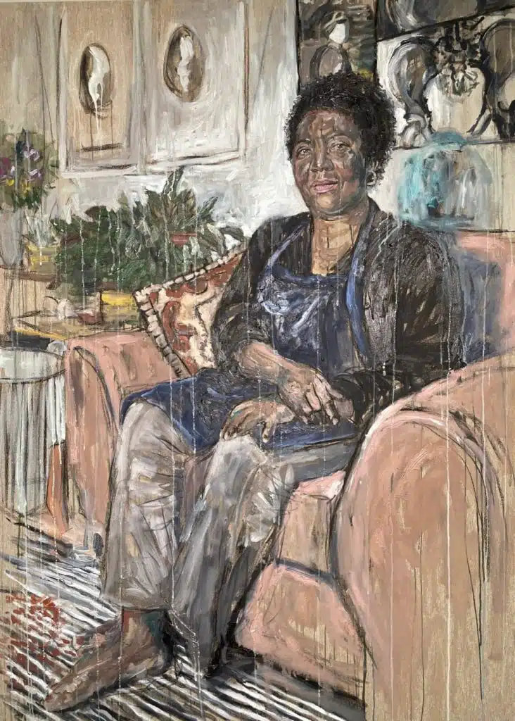 “Amefricanas” e “Organização já” são núcleos pensados a partir da escrita da Lélia Gonzalez. O primeiro dá protagonismo a figuras de mulheres inseridas intimamente nos movimentos sociais, ao mesmo tempo que celebra a vida comum e cotidiana. A exemplo disso, encontramos o retrato que a artista Panmela Castro fez de Rosana Paulino. Sobre a obra, Lorraine reflete: “É uma artista negra de uma geração mais recente, retratando aquela pessoa que, ao meu ver, é uma das grandes damas, aquela que é responsável pela carreira de muitos outros artistas e também pesquisadores. É uma daquelas figuras a quem a gente tem que prestar reverência.”
