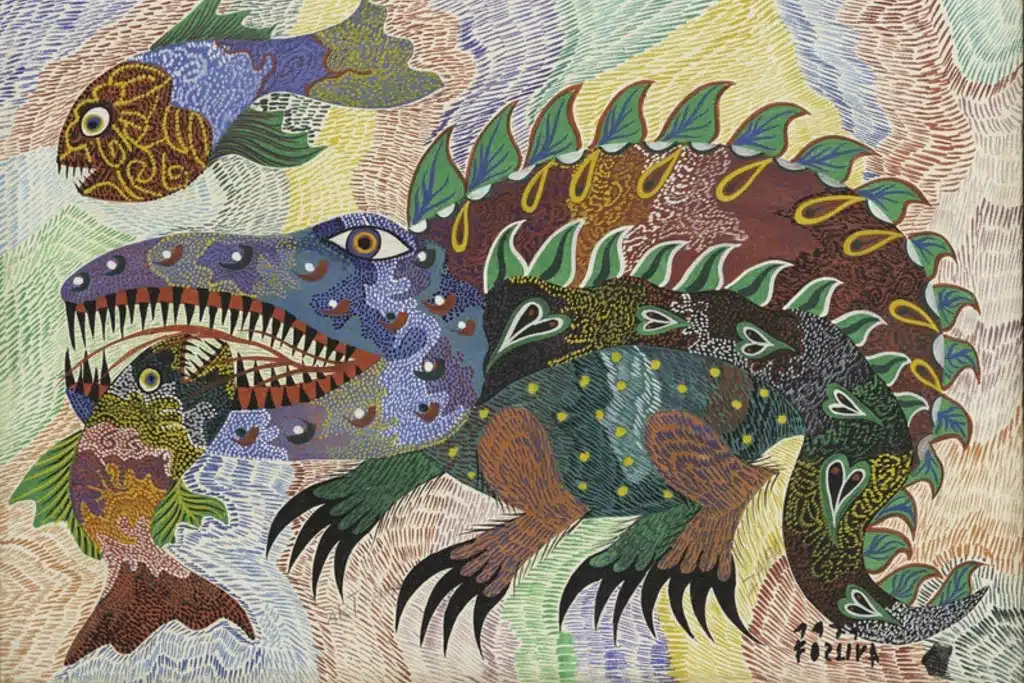 Francisco Domingos da Silva, mais conhecido como Chico da Silva, também vem representado nesta exposição. Chico, que foi pintor e desenhista autodidata, começou a desenvolver sua arte em muros e em casebres da cidade de Fortaleza usando giz e carvão. Assim, e de forma espontânea, surgiam figuras oriundas de sua imaginação, sempre repletas de cores vibrantes e formas especiais. Eram dragões, peixes voadores, sereias, sapos, galos, cobras, insetos, indígenas e tantos outros que, sob a grandiosidade de seus incomparáveis traços, lhe renderam reconhecimento, nacional e internacional.