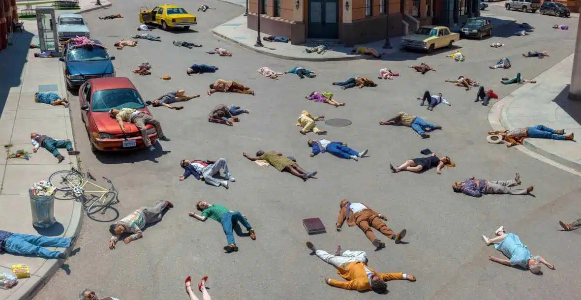 Part Two: Run é o momento máximo de uma série de exposições para o lançamento do ambicioso filme Run, realizado por Alex Prager, artista baseado em Los Angeles. As exposições anteriores aconteceram na Lehmann Maupin Palm Beach, em novembro de 2022, e na Lehmann Maupin London, em janeiro de 2022. Junto com a exibição de Run, a individual traz trabalhos recentes de Prager, mais especificamente uma seleção de suas novas fotografias e esculturas. Respondendo diretamente a um período de ambivalências e incertezas culturais, a produção do artista enfoca a perseverança humana e explora as oportunidades de empatia, participação e ação presentes tanto na arte como na vida cotidiana da atualidade a partir de uma concepção estética que remete a uma iconografia muitas vezes de época, outras tantas atemporal. Ao longo de sua prática, Prager elabora narrativas ricas e muitas vezes ambíguas que examinam as mitologias e arquétipos culturais que moldam a existência coletiva. Ao implantar e desconstruir convenções artísticas e narrativas, Prager explora como tanto os sentidos do Eu quanto o engajamento com os Outros, frequentemente mediados por histórias familiares. Ocupando uma tênue relação de tempo e lugar, as imagens cuidadosamente coreografadas do artista permanecem suspensas entre o passado e o presente, representando uma vontade coletiva de existir que não apenas transcende circunstâncias imediatas, mas persiste apesar delas. A base para o último conjunto de obras de Prager é o novo e poderoso filme do artista, Run. Apresentando composições musicais de Ellen Reid e Philip Glass e estrelando Katherine Waterston, o filme explora arquétipos cinematográficos e o humor baseado no absurdo, enquanto examina a resiliência humana diante da catástrofe. No enredo, um dia que seria comum irrompe no caos quando uma esfera maciça e espelhada vai sendo empurrada por toda uma comunidade. Aqui, o movimento para frente é contraposto a uma retrospectiva. As figuras colidem com seus próprios reflexos na superfície da esfera, e Prager sugere um ajuste de contas curativo e coletivo com forças fora do controle das pessoas. Nesse capítulo da mostra em 3 partes, Run dialoga com fotografias e esculturas que complexificam e enriquecem ainda mais as questões fundamentais do filme. Um exemplo é o trabalho fotográfico Sleep (2022, foto), que mostra uma cena de Run: uma porção de pessoas deitadas no chão após uma colisão em alta velocidade com a bola espelhada. Seu humor desconstrói as convenções do filme, revelando o potencial para o absurdo na suspensão de um único momento no tempo.