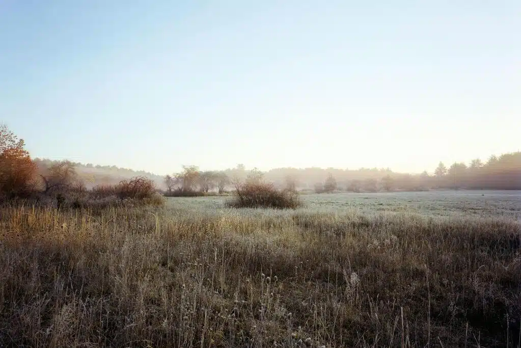 Em 1996, a artista Barbara Bosworth (nascida em 1953) começou a fotografar um campo em Carlisle, Massachusetts, a noroeste de Boston. Retornando regularmente ao longo dos 15 anos seguintes, ela usou uma câmera de grande formato para capturar imagens da terra em diferentes horas do dia e em todas as estações. Através da série de fotos resultante, chamada “The Meadow” (O Campo), Bosworth continua uma longa tradição de artistas, poetas e naturalistas da Nova Inglaterra que documentaram a passagem do tempo e os vestígios da presença humana em paisagens bonitas, porém discretamente inspecionais, como esta.