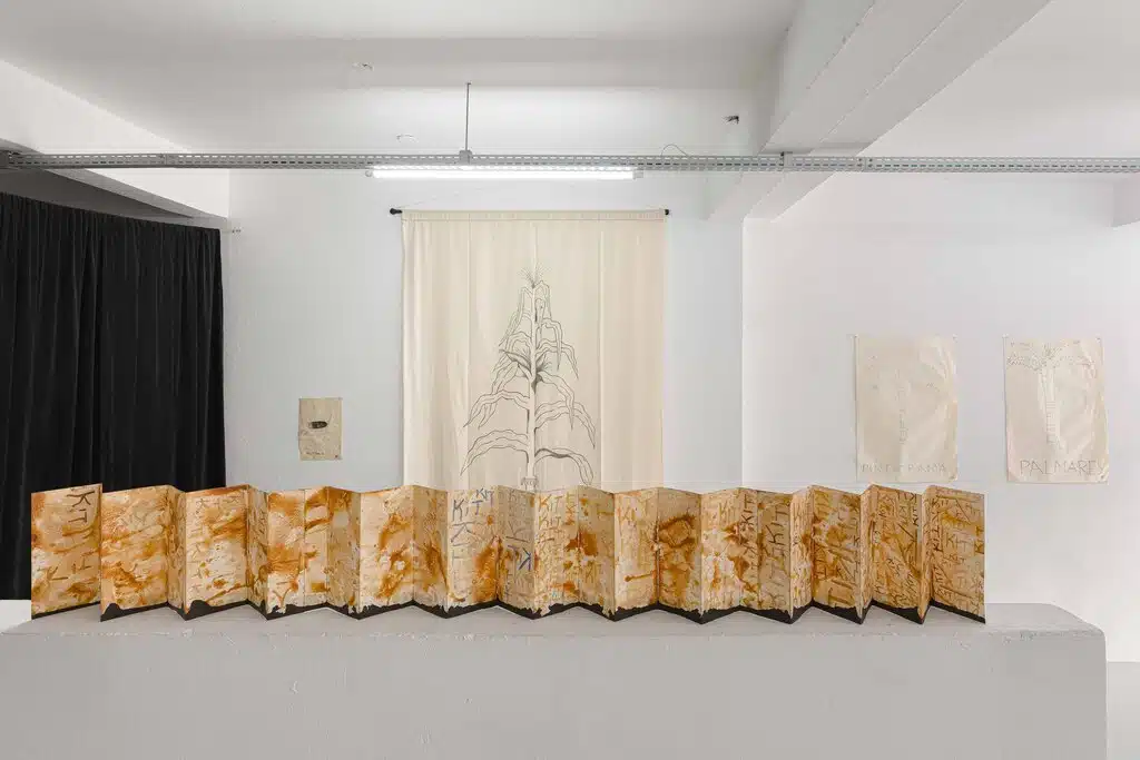 B’ey é uma exposição coletiva organizada pelos artistas Alejandro De La Guerra (Nicaragua), Edgar Calel (Guatemala), Jorge De León (Guatemala) e Paulo Nazareth (Brasil). O termo “B’ey” tem sua origem na palavra Kaqchikel “kalab’ey”, que significa simultaneamente caminho e modo de fazer algo. Na mostra os artistas apresentam trabalhos centrados no desenho como matéria direta de reflexão. Estas criações recentes convergem e interligam-se através de temas e processos de seus percursos próprios, atravessando fronteiras físicas e culturais, e utilizam a galeria como um refúgio acolhedor para acampar e encruzilhar.