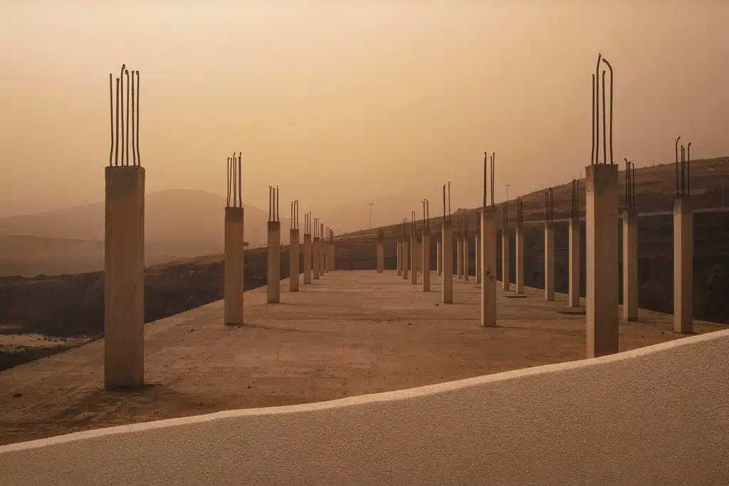 “Calima” é um fenômeno natural, meteorológico resultante da suspensão das partículas de areia na atmosfera. Essa areia é proveniente das dunas do Saara. Muitas vezes, ela viaja quilômetros, atravessa mares para se depositar em regiões remotas, cobrir ruínas de uma arquitetura em falência, esqueletos de animais, estradas, barcos, bandeiras ou sugerir novas narrativas de tempos passados. Podemos entender que nesta areia existe um tempo em suspensão e um deslocamento de imaginário de um passado remoto. Esta deposição recria situações e cobre o ambiente com inúmeras camadas de novos sentidos e novas narrativas.