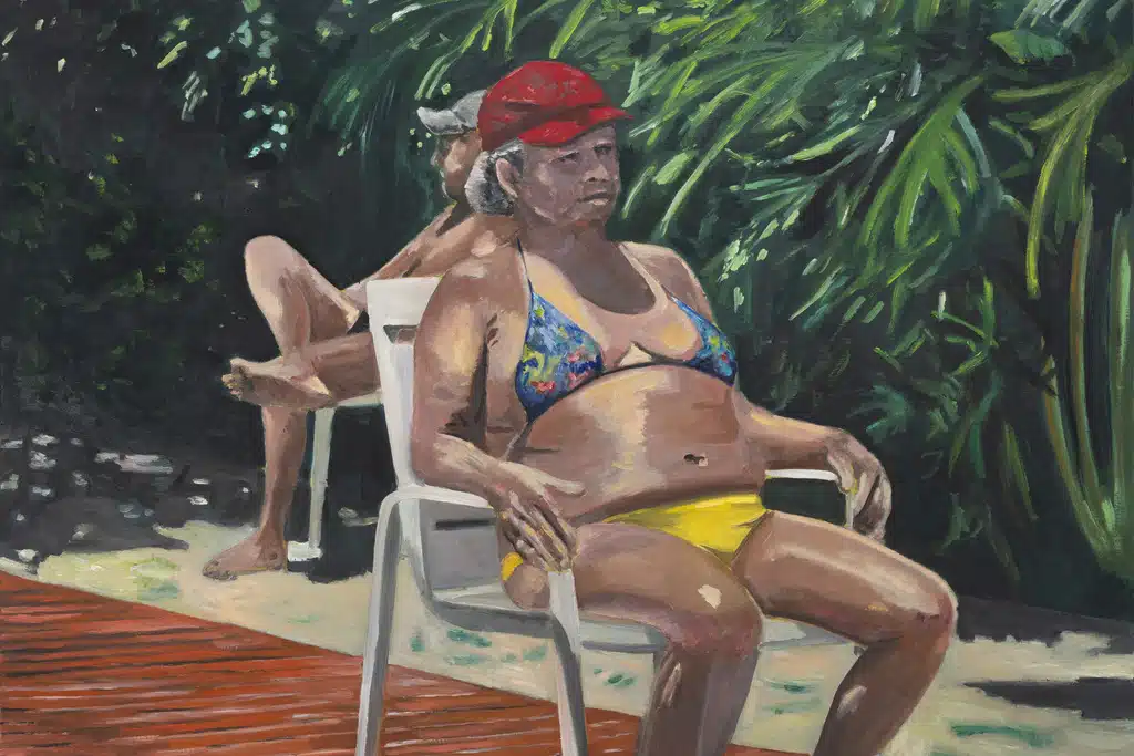 Ao mesmo tempo, nesse conjunto de trabalhos, o artista apresenta um número maior de pinturas em grande e médio formatos, que estabelecem uma relação contrastante entre a arquitetura brutalista da galeria e os cenários comuns de praças, ruas e terraços em suas obras.