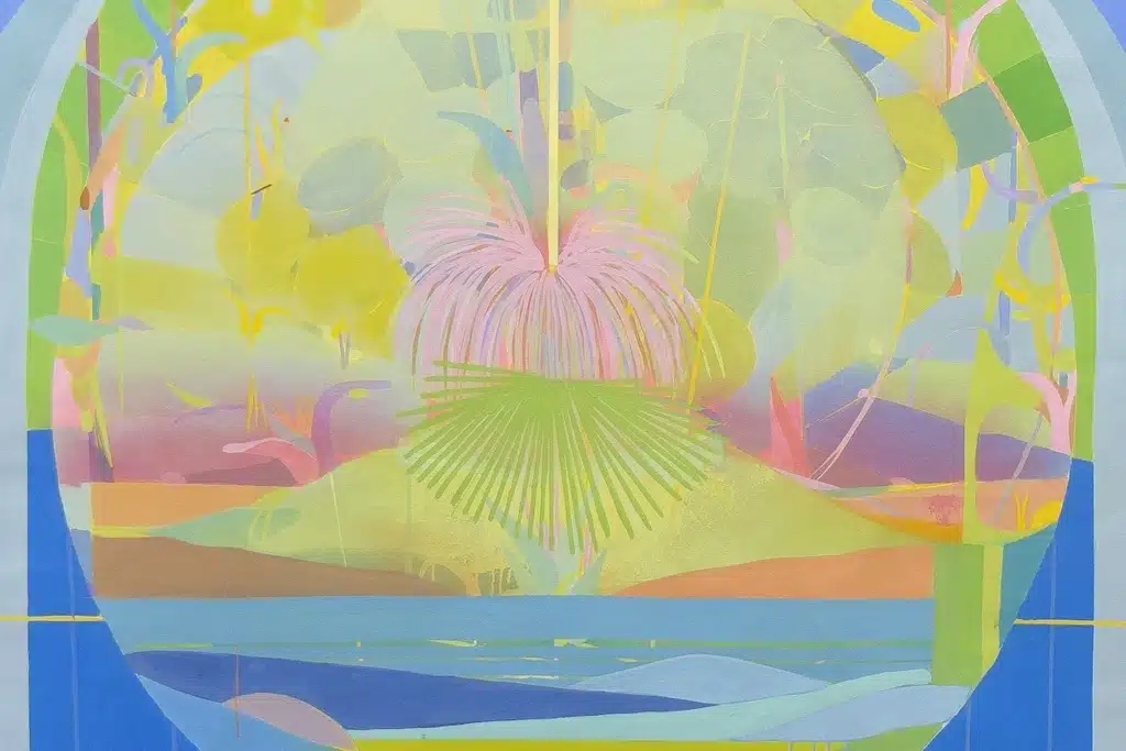 As formas geométricas e a simetria, que dialogam com as tradições  do neoconcretismo e do tropicalismo, se inscrevem entre o divino e o mundano que convivem nesse ambiente retratado, na sedução colorida dos vidros de lança perfume, nos caixotes de feira que viram molduras à telas na série caixotes, nos elementos da flora local pintados em lonas de piscina, pneus, restos de sacola de feira e uma palheta de cores emprestada de produtos de limpeza. Os objetos ordinários são reapropriados para estabelecer uma visão eletrizante dessa energia de um sertão que se reinventa cotidianamente.