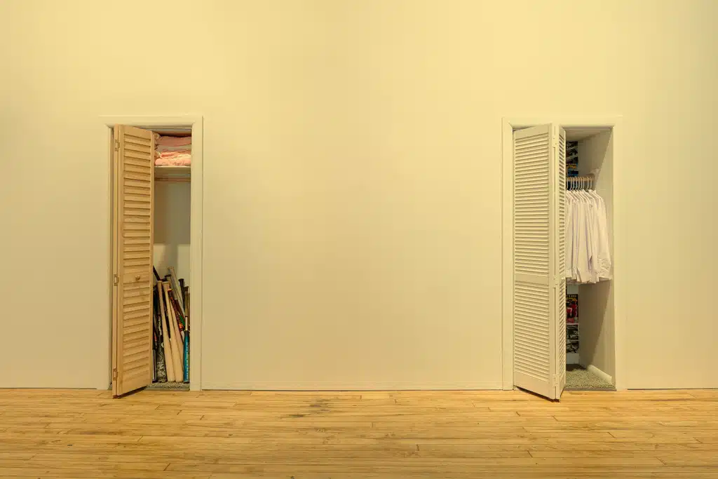 O título da exposição é tirado das memórias de infância da artista: quando a família de Stingily se mudou pela primeira vez para a casa onde ela passou a adolescência, seu irmão descobriu um bilhete adesivo afixado acima da porta de um armário em seu quarto que dizia “orgasms happened here” (orgasmos aconteceram aqui). Em sua apresentação na 52 Walker, Stingily foca no armário e em outros limiares — portas trancadas, janelas de vitrais e esculturas de portões prontos — que simbolizam privacidade, transição, curiosidade e transgressão.