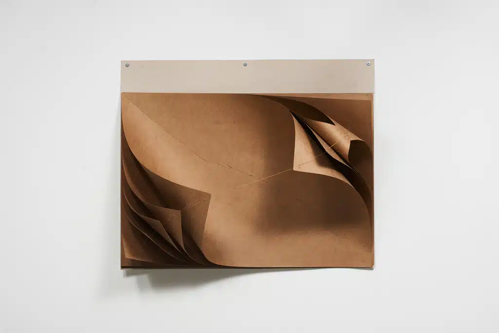 Já iah bahia apresenta uma intrigante interação entre corpos moles e o espaço, evocando figuras de Lygia Clark e dos neoconcretos. Sua habilidade em alojar esses corpos suspensos evoca também figuras fantasmas, elevando a forma invisível para uma atmosfera volumosa, caso da obra da série “outras frequências”, em papel pardo. “iah bahia forma um gesto quase mágico, encantado”, pontua a curadora.