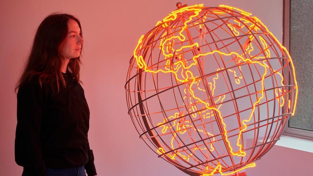 Mona Hatoum, Hot Spot (stand), 2018. Vista da instalação: Encounters – Giacometti x Mona Hatoum, Level 2 Gallery, Barbican Art Gallery. © Jo Underhill