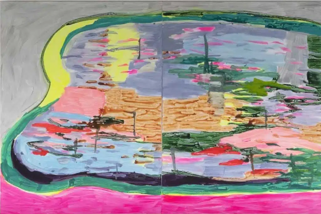 Terreirinho é a exposição individual de Gabriela Machado no Paço Imperial, no Rio de Janeiro, que acontece paralelamente às individuais dos artistas Souto Moura, Anna Braga, Maria Fernanda Lucena e Monica Mansur, além da coletiva O que nos Faz Amar e Enlouquecer Antes do Dilúvio. A ideia da mostra é de convocar trabalhos que não possuem a mesma visada, com pinturas e esculturas de datas e séries diferentes. Na mostra, Gabriela apresenta um conjunto de pinturas que tiveram como ponto de partida uma série inspirada nos lagos do Jardim da Estrela, em Lisboa (Portugal), que datam de 2017. No seu encalço seguem outras pinturas posteriores de dimensões menores, ainda que sejam paisagens, tema geralmente expresso em trabalhos de grandes dimensões. As paisagens retratadas pela artista falam dos lagos, das águas e das coisas, estabelecendo por sua vez um diálogo com a sua prática escultórica. Em dado momento, no processo de preparar a exposição, dando-se conta da enorme diversidade de estilos, temas e períodos das peças, a artista percebeu que estava construindo seu Terreirinho, de onde veio a inspiração para o nome da mostra. Gabriela Machado é formada em Arquitetura e Urbanismo pela Universidade Santa Úrsula, 1984. Estudou gravura, pintura, desenho e teoria da arte na Escola de Artes Visuais do Parque Lage. Frequentou cursos em História da Arte, ministrados pelos críticos Paulo Venâncio Filho, Paulo Sérgio Duarte e cursos de Estética e História da Arte, ministrados por Ronaldo Brito, na PUC e UNI/RIO. A poética da artista é um percurso sem ordem. Em suas telas de grande formato, a ordem se encontra no traço. Tudo resumido no gesto humano. Seu trabalho dialoga entre a linha de um braço e a linha desenhada, em constante renovação. A artista procura uma temporalidade de coloração mágica através de cores, fortes, firmes e compostas para formar um corpo natural – expressão da dança. No ano de 2009, Gabriela Machado foi vencedora do Prêmio de Artes Plásticas Funarte Marcantonio Vilaça. Inaugurou o espaço da Caixa Cultural de São Paulo com a exposição Doida Disciplina (2009), curadoria de Ronaldo Brito, após realizar a mesma exposição na Caixa Cultural do Rio de Janeiro e lançar um livro homônimo (Doida Disciplina, com um recorte de sua produção). Em 2008, Gabriela fez uma exposição individual na Galeria 3 +1 em Lisboa, Portugal, e foi também contemplada com o prêmio Marcantonio Vilaça em aquisição coletiva da Fundação Ecco (Brasília) Em 2008 lançou um livro intitulado Gabriela Machado (Editora Dardo, Santiago de Compostela, Espanha), com um apanhado de textos críticos e imagens de diferentes fases da sua carreira.