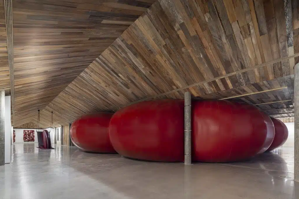 Vista da exposição “Inflamação” na Casa Bradesco, com obra “Blinded by Eyes, Butchered by Birth”, de Anish Kapoor. Foto: Joana França/Divulgação