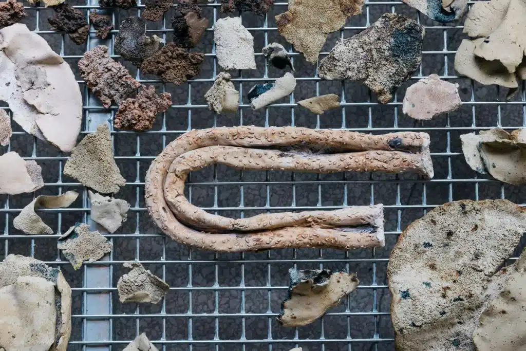“Break, Take, Erase, Tally”, primeira grande individual de Jumana Manna nos EUA, mostra a pesquisa multidisciplinar da artista, que explora os efeitos paradoxais das práticas de preservação na agricultura, na ciência e no direito. Marcando a estreia em Nova York do novo filme de Manna, “Foragers” (2022), a exposição reúne quase 20 obras, incluindo dois filmes recentes e uma série de esculturas novas e anteriores. Enfocando a terra diante das formas crescentes de sua alienação, os filmes de Manna usam uma série de métodos narrativos para examinar como as práticas baseadas na terra (agricultura e forragem, por exemplo) estão envolvidas e lutam contra as políticas neoliberais e coloniais e, por sua vez, contra as mudanças climáticas. Extraído de exemplos específicos, como a primeira retirada do Cofre Global de Sementes de Svalbard em 2015 em resposta à guerra síria (tema de seu filme “Wild Relatives”) Manna” ressalta as limitações científicas na recuperação da perda de vidas biológicas, em todas as suas formas. Seu trabalho visualiza a lenta violência da agricultura industrial enquanto faz perguntas pungentes sobre que tipo de futuro é possível em um presente precário. Em seu novo filme, “Foragers”, Manna se move entre documentário e ficção para abordar confrontos crônicos entre colhedores palestinos de ervas selvagens ‘akkoub e za’atar e a Autoridade Israelense de Proteção da Natureza, que considerou as plantas ameaçadas de extinção. A recusa dos foragidos e as punições que enfrentam, devido a grandes multas e tempo de prisão em potencial, às vezes assumem um tom absurdo e cômico que levanta questões-chave em torno da política de extinção – principalmente, quem determina o que vive e como vive. Em ambos os filmes da artista, plantas e sementes são temas primários, e a relação entre o trabalho humano e a terra é essencial para suas estruturas narrativas. A exposição também apresenta uma nova instalação em larga escala de esculturas que se inspiram nos restos fragmentados de khabyas, estruturas tradicionais e agora obsoletas para o armazenamento de grãos no Levante. As esculturas são colocadas em diálogo com suas características assemblages de rodapés industriais, que usam materiais encontrados no ambiente urbano, em lugares como canteiros de obras e sistemas de drenagem. Através da escultura e do filme, as obras da artista exploram a terra e seus ritmos como base para formas de vida que também podem servir para resistir, fugir e transformar estruturas de poder hegemônico.
