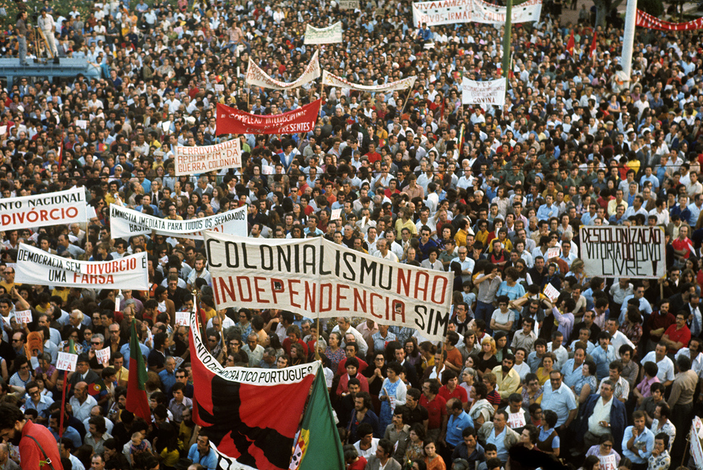 Alécio de Andrade, “Descolonização, vitória do povo livre / Democracia sem divórcio é uma farsa.” Grande manifestação em Lisboa pelo direito ao divórcio e pela independência das colônias. Lisboa, verão de 1974. © Alécio de Andrade. Cortesia Pinakotheke Cultural