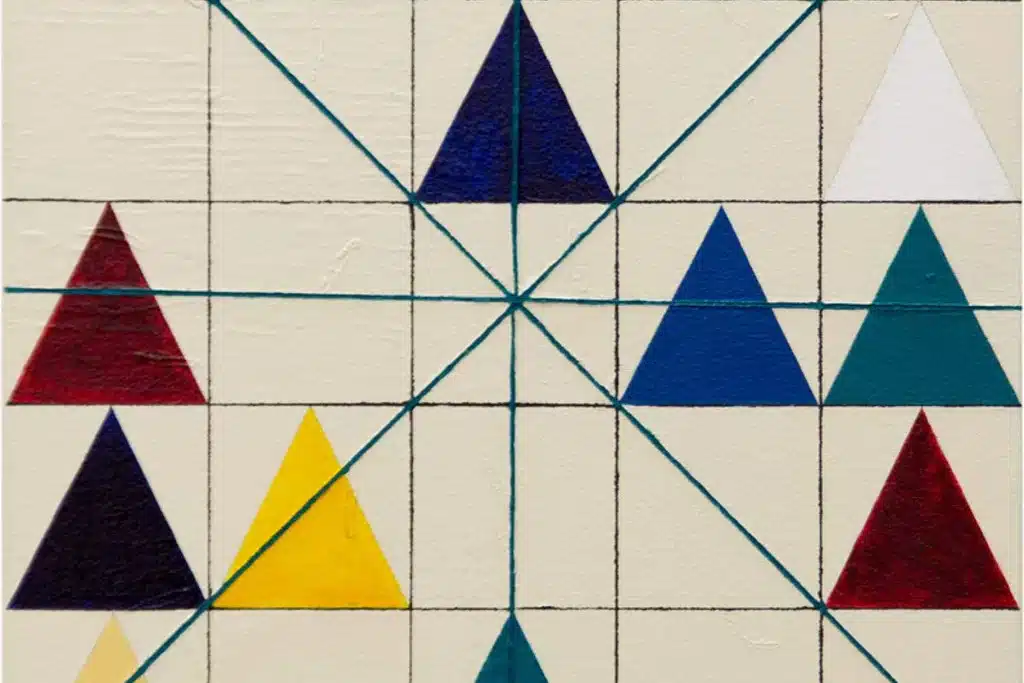 A exposição Oráculos apresenta a obra recente da artista Marina Caverzan, que explora diferentes sistemas oraculares, como o tarô, a Cabala, a geomancia, o I Ching e a quiromancia. Através de uma combinação de padrões matemáticos e referências ao construtivismo, a artista busca criar uma síntese entre rigor formal e emanação espiritual. Uma das obras destacadas na exposição é Geomantic Body, na qual 16 símbolos da geomancia se tornam 16 pinturas, organizadas em um círculo, evocando a simetria e as dimensões do tarô. Marina Caverzan busca estabelecer um sincretismo oracular, explorando as convergências entre os diferentes sistemas e desconstruindo seus símbolos, sem questionar sua eficácia. Através dessa fusão entre precisão e mistério, a obra convida o espectador a adentrar no desconhecido. A temática abordada na exposição revela o interesse da artista pelo visível e invisível, explorando as relações entre matemática e espiritualidade. Em obras como Mal me quer, mal me quer e Papisa, Marina Caverzan subverte convenções tradicionais, como a representação feminina na Cabala e a associação de instrumentos oraculares às mãos femininas. A artista também trabalha com a combinação de formas geométricas, como triângulos e círculos, criando composições que alternam entre regularidade e porosidade. Nesse contexto, Marina Caverzan também investiga temas relacionados à vida e à morte. Em Séance, por exemplo, um círculo composto por pequenos triângulos cria uma abertura, sugerindo a possibilidade de comunicação com o além. Ainda, a artista aborda preocupações contemporâneas, como a proteção da natureza, como evidenciado em Psychographie, onde linhas de um texto descontrolado acompanham uma pedra, simbolizando um convite para ouvir e convocar a mensagem da natureza. No conjunto das obras apresentadas, Marina Caverzan alcança um pensamento geométrico expandido, criando imagens que são ao mesmo tempo estranhas e familiares. A exposição Oráculos convida o espectador a refletir sobre a percepção, os limites do conhecimento e as múltiplas camadas de significado presentes nos sistemas oraculares. Como bem resume o ditado em latim citado pela artista: “saber tudo é perder tudo”.