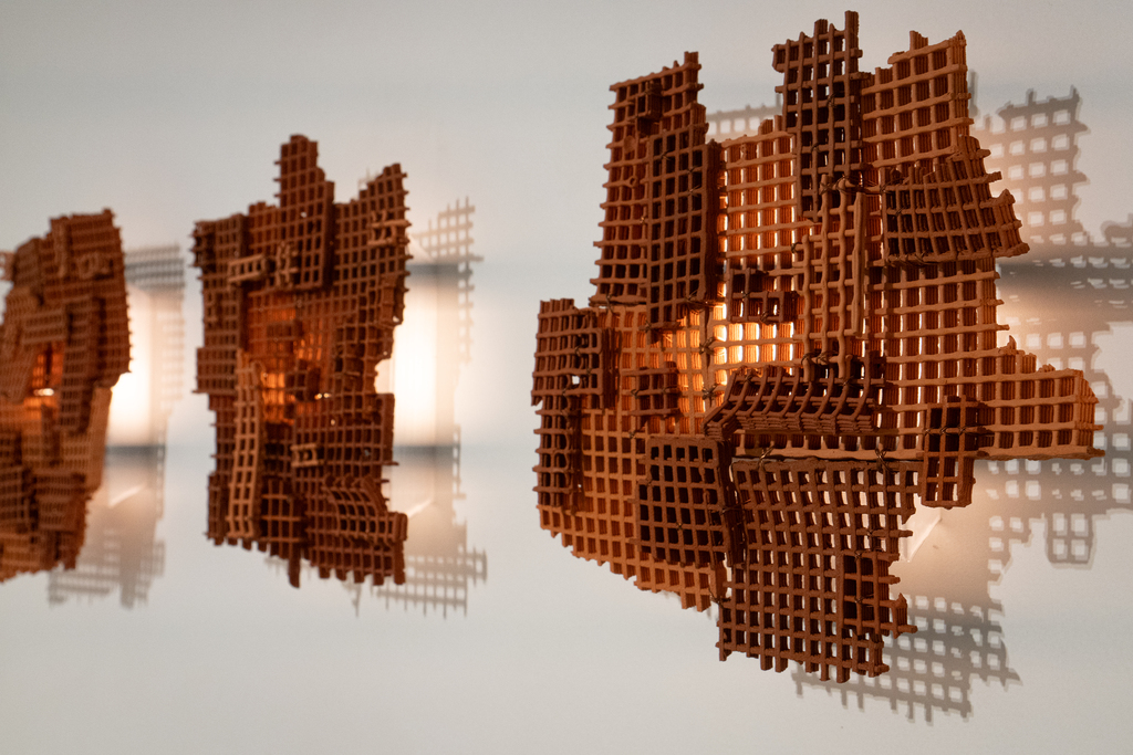 Além de “Vasos Dedo Verde”, a mostra reúne outras quatro peças. A mesa “Erosão”, da Suite Design, reflete sobre como o tempo esculpe a matéria, combinando uma base em taipa de pilão, desenvolvida por André Heise, da Taipal Brasil, e plástico reciclado pelo grupo Abdol, revelando o essencial oculto sob o excesso. O estúdio Superlimão apresenta a luminária “Costura da Terra”, feita de fragmentos cerâmicos unidos por fios de cobre, um exercício poético que costura imperfeições e reconstrói o que foi quebrado, unindo tecnologia e gesto artesanal. O “Banco Reverso”, da d.Propósito, em parceria com os designers Fábia Toqueti e Bruno Camarotti, propõe um diálogo entre a taipa e a madeira entalhada, onde as texturas se espelham e a matéria revela sua memória viva. A “Luminária Solo” por Diego Motta, da Attom Design, e Marcela Ary, da Bioseri, trazem a fusão da madeira com a técnica marroquina Tadelakt, combinando leveza e firmeza com argila, feno e peroba rosa de demolição, apresentando o brilho manual do polimento natural marroquino.